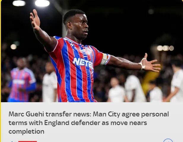 นอกจากนี้ สกาย สปอร์ต รายงานว่า แมนเชสเตอร์ ซิตี้ ได้บรรลุข้อตกลงส่วนตัวกับ เกอีเย่ อย่างเป็นทางการแล้ว โดยข้อตกลงมูลค่า 20 ล้านปอนด์ จะเสร็จสมบูรณ์ในเร็ว ๆ นี้เกอีได้เข้ารับการตรวจร่างกายเมื่อวันอาทิตย์ที่ผ่านมา และกำลังจะได้รับการประกาศอย่างเป็นทางการในเร็ว ๆ นี้ ผู้จัดการทีมคริสตัล พาเลซ กลาสเนอร์ ได้แสดงความไม่พอใจอย่างรุนแรงต่อการตัดสินใจขายกัปตันทีมของตน โดยแถลงการณ์ในงานแถลงข่าวว่า ทีมรู้สึกถูกทอดทิ้ง และได้รับผลกระทบอย่างรุนแรงทั้งทางจิตใจและทางยุทธศาสตร์ การจากไปของสองผู้เล่นในตำแหน่งสำคัญในช่วงเวลาที่สำคัญของฤดูกาลนี้ ได้สร้างความเสียหายอย่างรุนแรงต่อขวัญกำลังใจของทีม