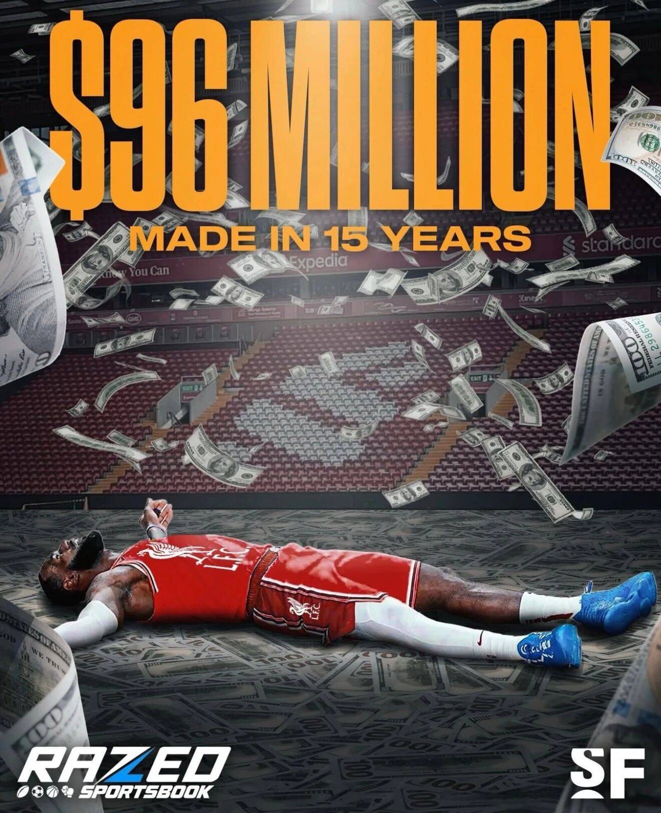 ปัจจุบันมีมูลค่าประมาณ 5.4 พันล้านดอลลาร์สหรัฐ การถือหุ้น 2% ในสโมสรมีมูลค่าประมาณ 108 ล้านดอลลาร์สหรัฐ ซึ่งคิดเป็นผลตอบแทนจากการลงทุนเริ่มต้นของเจมส์ถึง 15 เท่า ช่างมีสายตาที่เฉียบแหลมในการลงทุนจริงๆ!