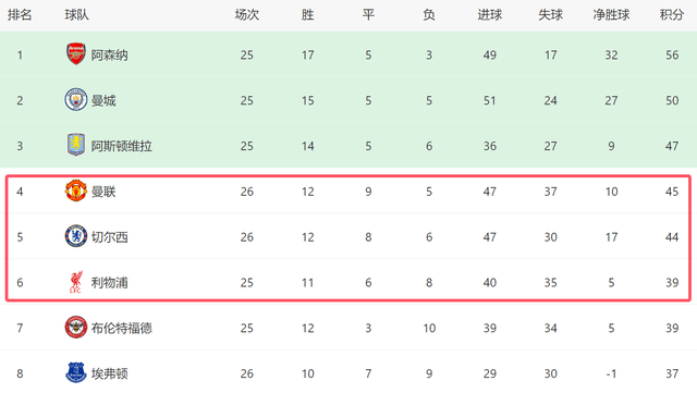 ในตารางลีก แมนเชสเตอร์ ยูไนเต็ด นำลิเวอร์พูล ทีมอันดับหกอยู่หกแต้ม โดยลิเวอร์พูลจะออกไปเยือนซันเดอร์แลนด์ในสุดสัปดาห์นี้ ด้วยฟอร์มที่ย่ำแย่ของลิเวอร์พูลในช่วงหลังและสถิติการเล่นในบ้านที่แข็งแกร่งของซันเดอร์แลนด์ ทำให้หงส์แดงมีแนวโน้มที่จะทำแต้มหล่นอีกครั้ง แม้ลิเวอร์พูลจะเอาชนะได้ พวกเขาก็จะยังตามหลังยูไนเต็ดอยู่สามแต้ม ซึ่งทำให้การจบในสี่อันดับแรกในระยะใกล้นี้เป็นไปได้ยาก