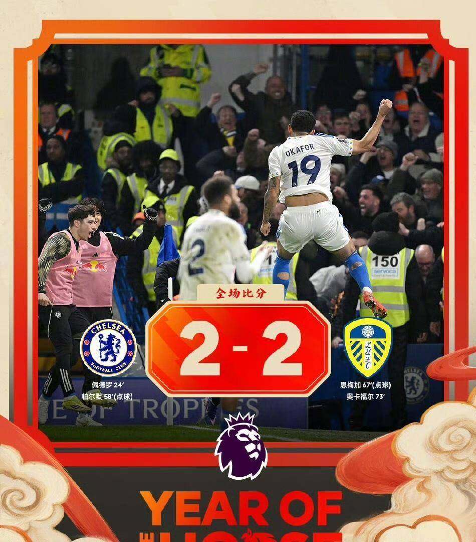 ก่อนอื่น ขอให้เราหันความสนใจไปที่สนามสแตมฟอร์ด บริดจ์ ซึ่งเชลซีเป็นเจ้าบ้านต้อนรับการมาเยือนของลีดส์ ยูไนเต็ด เพียง 24 นาทีแรกของเกม ทัพสิงห์บลูส์ก็ได้เห็นพาลเมอร์จ่ายบอลทะลุช่องอย่างแม่นยำ ตัดผ่านแนวรับของทีมเยือน ส่งให้เปโดรหลุดเดี่ยวไปเผชิญหน้ากับผู้รักษาประตูแบบหนึ่งต่อหนึ่ง ดาวเตะชาวสเปนรักษาความเยือกเย็นไว้ได้ ก่อนจะชิพบอลข้ามหัวผู้รักษาประตูเข้าไปอย่างนุ่มนวล ส่งเชลซีขึ้นนำ 1-0ในนาทีที่ 56 ของครึ่งหลัง เปโดรถูกกองหลังของลีดส์ทำฟาวล์ในกรอบเขตโทษ ทำให้ผู้ตัดสินชี้ไปที่จุดโทษอย่างเด็ดขาด พาล์มเมอร์ก้าวขึ้นมาสังหารจุดโทษอย่างเยือกเย็น ส่งบอลเข้าประตูไปอย่างสวยงาม ทำให้เชลซีนำห่างเป็น 2-0 ด้วยชัยชนะติดต่อกันเป็นนัดที่ 5 ดูเหมือนว่าชัยชนะจะอยู่ในมือแล้ว แฟนบอลเชลซีเริ่มฉลองกันอย่างล่วงหน้า อย่างไรก็ตาม ลีดส์ ยูไนเต็ดไม่ยอมแพ้ง่าย ๆในนาทีที่ 67 เซสเปเดสทำฟาวล์อย่างประมาทในกรอบเขตโทษ มอบจุดโทษให้กับลีดส์ นเมชาสังหารเข้าไปอย่างง่ายดาย ลดช่องว่างเหลือ 2-1 เพียงหกนาทีต่อมา ลีดส์ก็ทำประตูอีกครั้ง ท่ามกลางความวุ่นวายในกรอบเขตโทษ โอคาฟอร์ฉวยโอกาสยิงบอลเข้าไปตุงตาข่ายอย่างเยือกเย็น ตีเสมอเป็น 2-2! ลีดส์ตีเสมอได้อย่างเหลือเชื่อในช่วงทดเวลาบาดเจ็บ พาล์มเมอร์มีโอกาสที่จะปิดเกมชนะ แต่กลับพลาดโอกาสทองจากการยิงระยะเผาขนในที่สุด เชลซีเสมอกับลีดส์ ยูไนเต็ด 2-2 ที่บ้าน ทำให้สถิติชนะติดต่อกัน 4 นัดของพวกเขาหยุดลงอย่างกะทันหัน แม้จะครองบอลถึง 66% และยิงประตูมากกว่า 19-4 แต่การเสียสมาธิในแนวรับหลังจากนำและขาดความเฉียบคมในการจบสกอร์กลายเป็นปัจจัยสำคัญที่ทำให้พวกเขาไม่สามารถคว้าชัยชนะได้ หลังจบเกม ผู้จัดการทีมรอสซินีได้ยอมรับว่าทีมจำเป็นต้องมีความมุ่งมั่นมากขึ้น