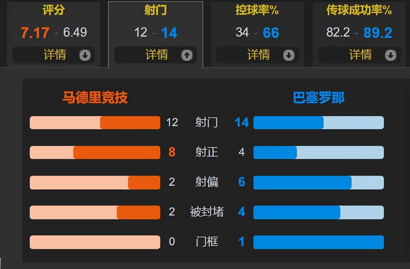 ตลอดการแข่งขัน แอตเลติโก มาดริดครองบอลได้ 34% และยิงเข้ากรอบ 12 ครั้ง น้อยกว่าบาร์เซโลนา 2 ครั้งที่ยิงได้ 14 ครั้ง อย่างไรก็ตาม แอตเลติโกยิงเข้ากรอบ 8 ครั้ง ซึ่งมากกว่าบาร์เซโลนา 4 ครั้งถึงสองเท่า