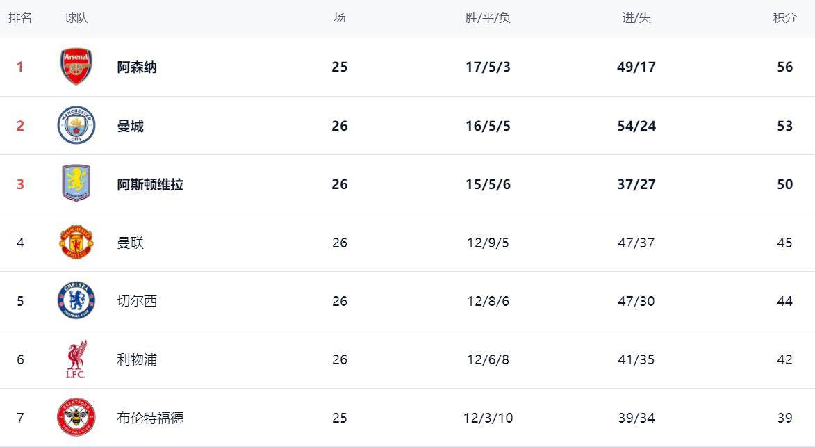การแข่งขันรอบที่ 26 ของพรีเมียร์ลีกได้จุดประกายศึกครั้งใหม่ โดยสโมสรชั้นนำต่างเปิดฉากโจมตีเพื่อสร้างความตื่นเต้นให้กับแฟนบอล ที่จ่าฝูงของตาราง อาร์เซนอลนำเป็นจ่าฝูงด้วยสถิติอันน่าประทับใจ ชนะ 17 นัด เสมอ 5 นัด แพ้ 3 นัด เก็บได้ 56 คะแนน ครองตำแหน่งจ่าฝูงอย่างมั่นคงตามมาติด ๆ คือ แมนเชสเตอร์ ซิตี้ ที่คว้าชัยชนะในบ้านอย่างสบาย ๆ 3-0 เหนือ ฟูแล่ม ทำให้พวกเขามีคะแนนสะสมถึง 53 คะแนน ซึ่งทำให้พวกเขาตามหลัง อาร์เซนอล อยู่เพียง 3 คะแนนเท่านั้น และยังคงเป็นคู่แข่งที่น่ากลัวสำหรับการชิงแชมป์อย่างไม่ต้องสงสัย ทั้งนี้ แมนเชสเตอร์ ซิตี้ ได้ลงเล่นมากกว่า อาร์เซนอล หนึ่งนัด ซึ่งเพิ่มความน่าสนใจให้กับการแข่งขันชิงแชมป์อย่างมากแอสตัน วิลล่า ก็คว้าชัยชนะในรอบนี้เช่นกัน ขยับขึ้นมาอยู่อันดับสามด้วยคะแนน 50 คะแนน จากสามคะแนนสำคัญนี้ ซึ่งทำให้พวกเขายังคงมีความหวังในการลุ้นแชมป์อยู่ทางทฤษฎี แมนเชสเตอร์ ยูไนเต็ด อยู่อันดับสี่ด้วยคะแนน 45 คะแนน ขณะที่เชลซี ตามมาเพียงหนึ่งคะแนนในอันดับห้า