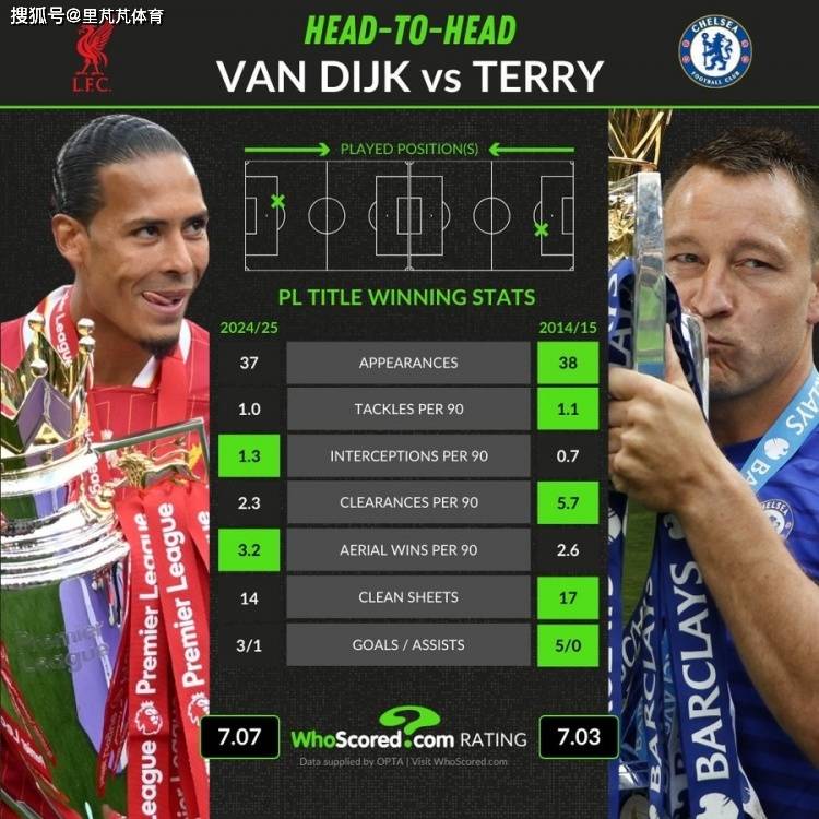 4 - การเปรียบเทียบสถิติสำคัญโดย Whoscored ระหว่างเทอร์รีและฟาน ไดค์ แสดงให้เห็นว่าพวกเขาอยู่ในระดับที่สูสีกันในช่วงที่อยู่ในฟอร์มสูงสุด