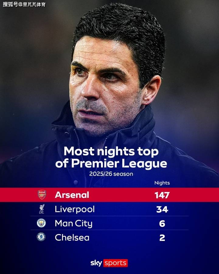 การสูญเสียคะแนนในลีกของอาร์เซนอลล่าสุดทำให้ตำแหน่งจ่าฝูงของพวกเขาตกอยู่ในความเสี่ยง สกาย สปอร์ตส์ ได้รวบรวมสถิติเกี่ยวกับจำนวนวันที่แต่ละทีมครองตำแหน่งจ่าฝูงในฤดูกาลนี้ อาร์เซนอลนำเป็นอันดับหนึ่งด้วย 147 วัน แสดงให้เห็นถึงความเหนือชั้นของพวกเขาในครึ่งแรกของฤดูกาล ลิเวอร์พูลอยู่ในอันดับสองด้วย 34 วัน แมนเชสเตอร์ ซิตี้อยู่ในอันดับสามด้วยเพียง 6 วัน และเชลซีอยู่ในอันดับสี่ด้วย 2 วัน ข้อมูลนี้สะท้อนถึงความสม่ำเสมอของทีมปืนใหญ่ตลอดทั้งฤดูกาล