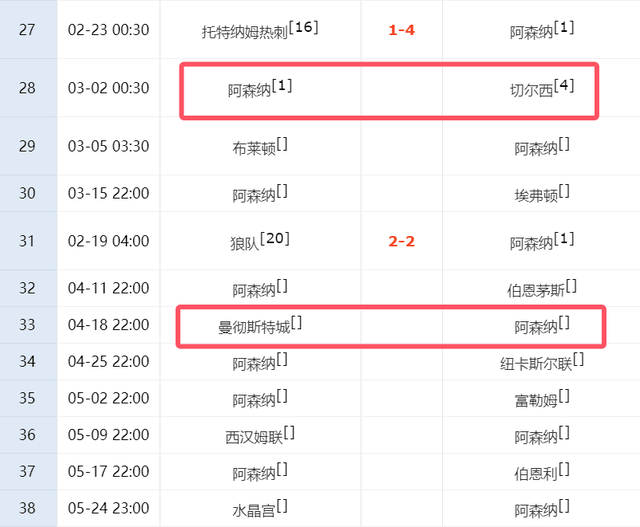 ในรอบที่ 33 อาร์เซนอลจะต้องเดินทางไปพบกับแมนเชสเตอร์ ซิตี้ ซึ่งคาดว่าจะเป็นเกมตัดสินแชมป์อย่างแท้จริง หากพวกเขาสามารถคว้าชัยชนะในเกมเยือนได้ ทีมปืนใหญ่จะมีโอกาสสูงมากที่จะคว้าแชมป์ไปครอง ด้วยคู่แข่งที่อยู่ในอันดับห้าอันดับแรกเหลือเพียงสองทีมในสิบนัดสุดท้าย คือ เชลซีและแมนเชสเตอร์ ซิตี้ ผลการแข่งขันของสองนัดนี้จะตัดสินว่าอาร์เซนอลจะได้ชูถ้วยแชมป์ในท้ายที่สุดหรือไม่