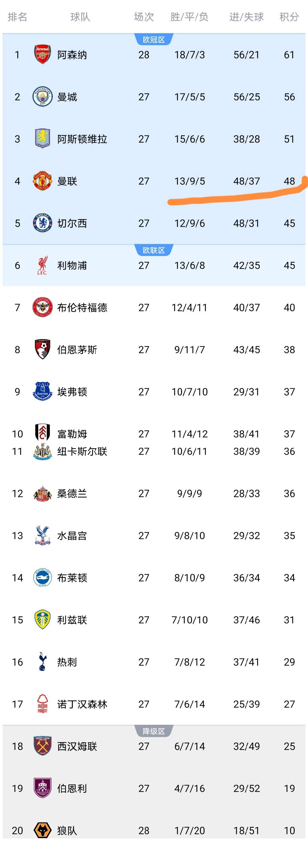 ในช่วงเช้าตรู่ของวันนี้ การแข่งขันรอบที่ 27 ของพรีเมียร์ลีกได้สิ้นสุดลงแล้ว โดยเป็นการพบกันระหว่างแมนเชสเตอร์ ยูไนเต็ด และเอฟเวอร์ตัน หลังจบการแข่งขันนี้ อันดับในตารางลีกได้เปลี่ยนแปลงไป ขอให้เราตรวจสอบการเปลี่ยนแปลงเหล่านี้