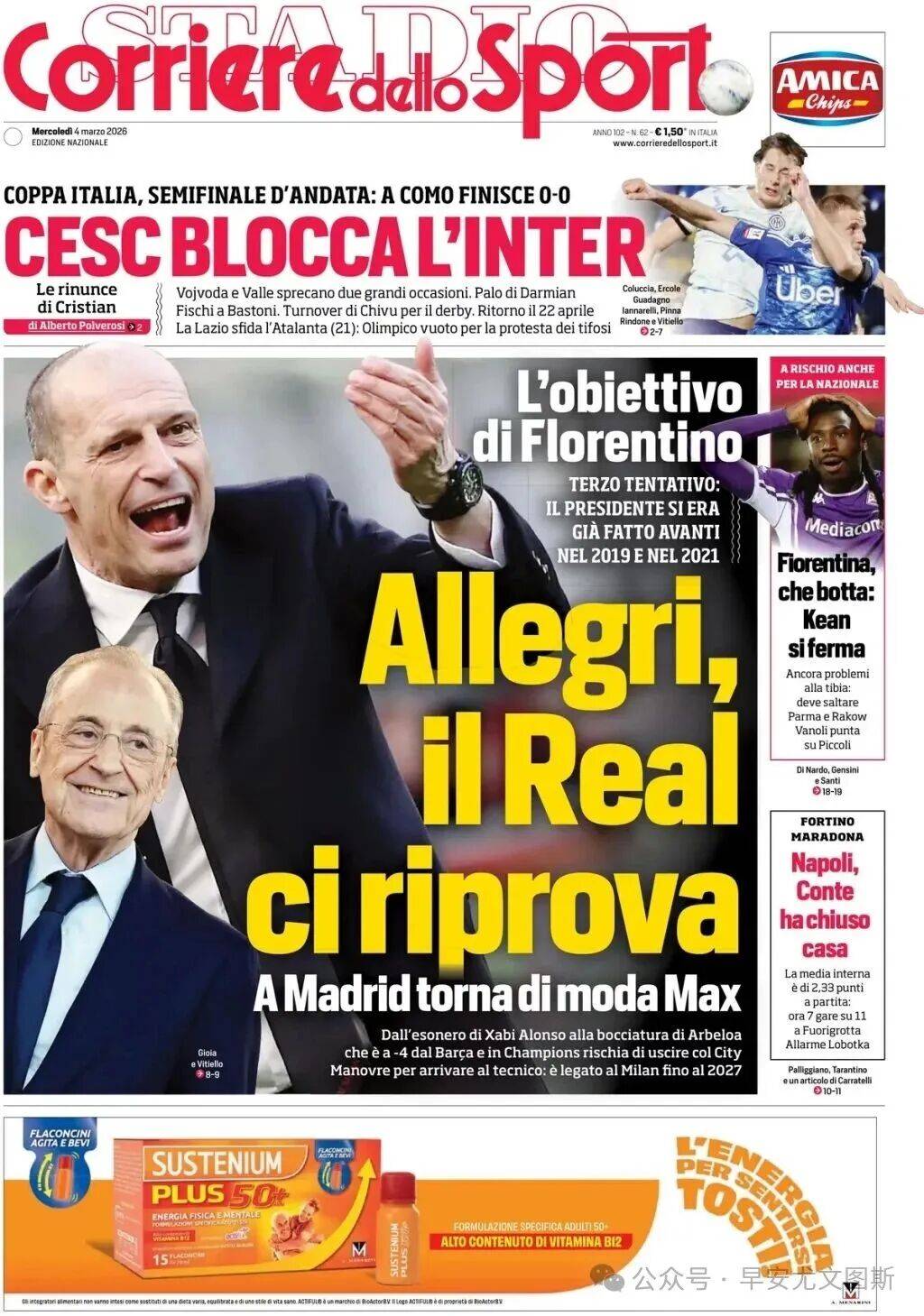 2 . เซียวฟาบบล็อกอินเตอร์และสกัดกั้น ITSIA รอบรองชนะเลิศรอบรองชนะเลิศของ Coppa Italia: 0-0 สำหรับแขกของ Como Waywoda และ Valle เสียโอกาสดีๆ ไปสองครั้ง Damian ตีโพสต์ และ Bastony ก็โห่ร้อง การหมุนเวียนของ Ziwo ในดาร์บี้รอบต่อไปในวันที่ 22 เมษายน ลาซิโอท้าทายแอตแลนต้าคืนนี้ และสนามกีฬาโอลิมปิกก็ว่างเปล่าเนื่องจากการประท้วงของแฟนๆ
