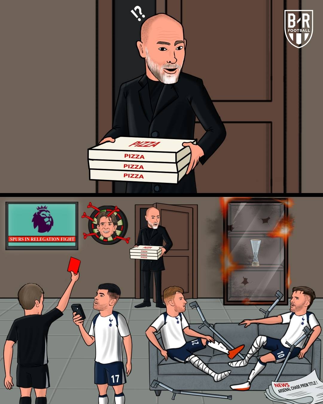 ท็อตแนมเข้ามาแทนที่ โบ ซือ ที่คว้าแชมป์ยูโรป้าลีกในฤดูกาลนี้ และเพิ่งไล่ตวัดให้อดีตโค้ชของยูเวนตุส ทูดอร์ เข้ารับตำแหน่ง แต่การเปลี่ยนโค้ชล้มเหลวในการเปลี่ยนสถานการณ์ผลงานของท็อตแนมลีก ทีมท็อตแนมเต็มไปด้วยทหารที่ได้รับบาดเจ็บ และ Kudus, Bentankul, Madison, Kulu, Belivar, Udrgi และ Spence ได้รับบาดเจ็บทั้งหมด ด้วยสกอร์ท็อตแนมในปัจจุบันในพรีเมียร์ลีกรวมถึงปัญหาอาการบาดเจ็บในทีมและรอบชิงชนะเลิศแชมเปี้ยนส์ลีก 1/8 กำลังจะเริ่มต้น ท็อตแนมจะเล่นกับแอตเลติโกมาดริดและท็อตแนมจะไม่เก่งในการตกชั้นในฤดูกาลนี้! หากสเปอร์สของทีมพรีเมียร์ลีก Big6 ตกชั้น พรีเมียร์ลีกจะเข้าสู่ยุคใหม่ของ BIG5
