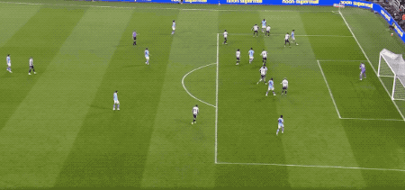 ในนาทีที่ 39 แมนเชสเตอร์ ซิตี้ ทำคะแนนให้เท่ากัน และดูคูใช้ความเร็วและการเคลื่อนไหวปลอมเพื่อบุกทะลวงไปยังบรรทัดล่างสุดแล้วข้ามไป ซาวิญโญอยู่หน้าประตู บอลกระทบขาและกระเด็นเข้าประตู