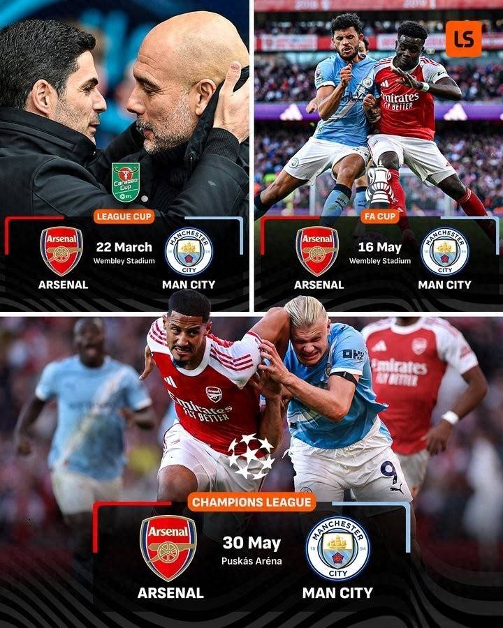 แฟน ๆ เยาะเย้ยสิ่งนี้ Champions League และ Premier League เป็นทีมเดียว ทีม League Cup และ FA Cup One ซึ่งสมบูรณ์แบบและ Master และ Apprentice ก็มีความสุข โดยส่วนตัวแล้ว เป็นไปได้มากที่อาร์เซนอลและแมนเชสเตอร์ ซิตี้ จะร่วมทีมในรอบชิงชนะเลิศของเอฟเอ คัพ และมันยากเกินไปที่จะพบกันในรอบชิงชนะเลิศแชมเปี้ยนส์ลีก ครึ่งแรกของแมนเชสเตอร์ ซิตี้ ยากเกินไป และคู่ต่อสู้ของอาร์เซนอลที่จะผ่านเข้าสู่รอบชิงชนะเลิศได้ก็มีเพียงบาร์เซโลนาเท่านั้น