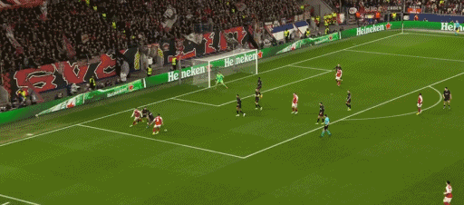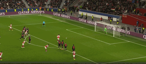 ในนาทีที่ 46 ผู้เล่นเลเวอร์คูเซ่น กริมมาร์โดเตะมุมที่จุดหลัง Andrish มุ่งหน้าไปที่ประตู เลเวอร์คูเซ่น 1-0 อาร์เซนอล!