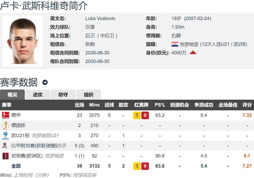 ตอนนี้กองหลังตัวเก่งในวงการฟุตบอลนั้นหาได้ยากจริงๆ และมีผู้พิทักษ์สูงสุดอีกคนในฟุตบอลโครเอเชีย ซึ่งเป็นนักเตะวัย 19 ปี วูสโควิช ที่เล่นในฮัมบูร์ก บุนเดสลีกา ชาวเยอรมัน Zhuan ได้อัปเดตมูลค่าของผู้เล่นพรีเมียร์ลีกและลาลีกา จากนั้นผู้เล่นบุนเดสลีกาจะได้รับการอัปเดต ชาวเยอรมัน Zhuan อุ่นเครื่องที่เปลี่ยนแปลงมูลค่าของ Vusskovic ด้วยเงินสูงสุด 65 ล้านยูโรและขั้นต่ำ 50 ล้านยูโร
