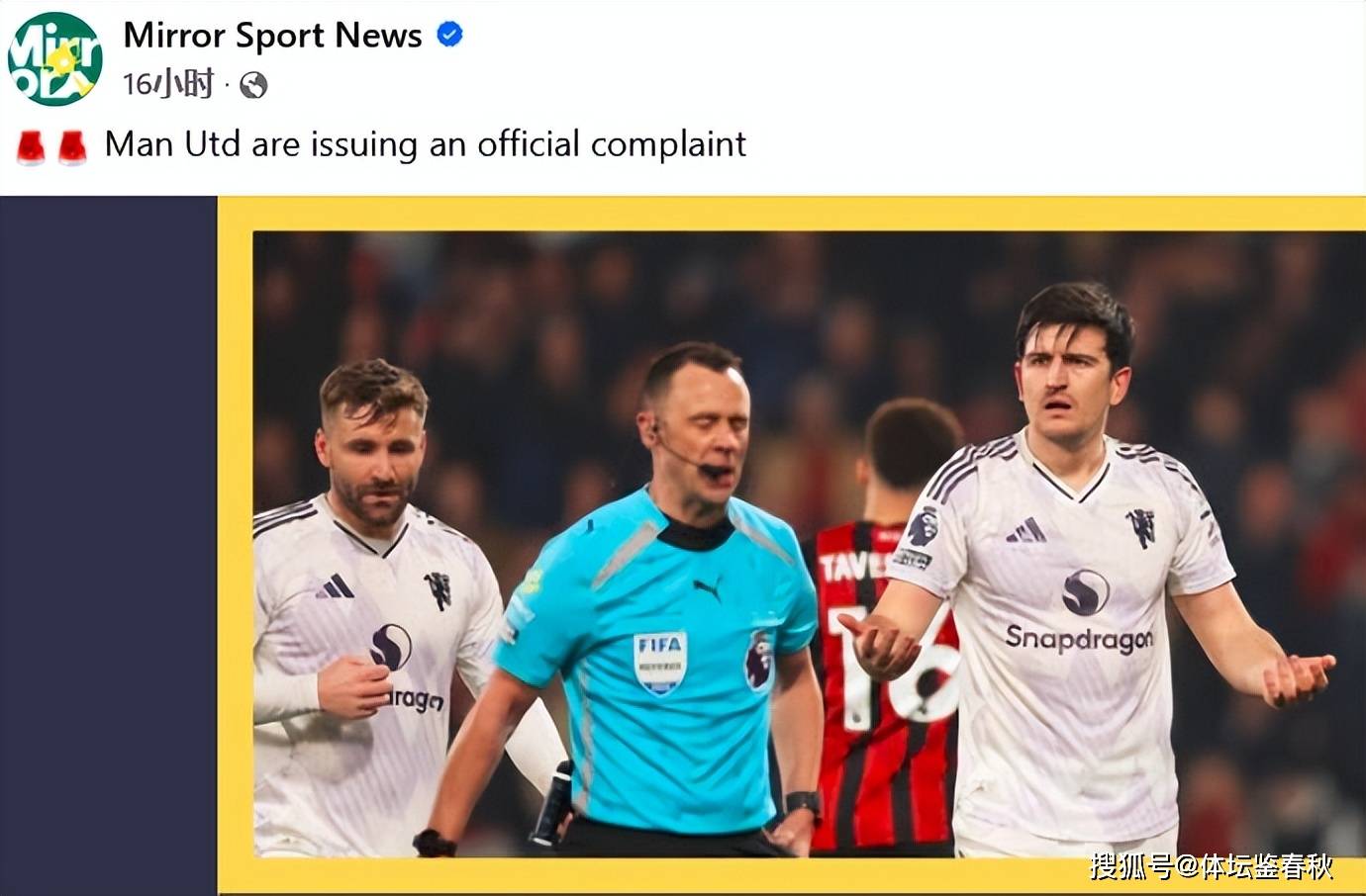 ผู้ตัดสินพรีเมียร์ลีก "กับงาน" บังคับใช้กฎหมาย? ผู้ตัดสินคู่เดียวกันขโมยแมนเชสเตอร์ยูไนเต็ด 4 แต้ม ปีศาจแดงบ่นอย่างเป็นทางการ_boths_bournemouth_uefa champions league