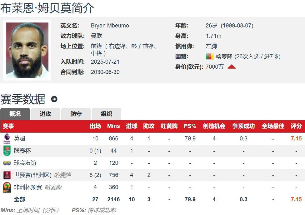 - 曼联4-2布莱顿,姆伯莫梅开二度。