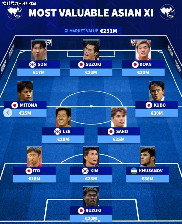 ผู้เล่นตัวจริง 11 คนของเอเชีย: "พี่ชายคนแรกของเอเชีย" ยังคงเป็นผู้นำ แมนเชสเตอร์ซิตี้ Zhongwei มีราคาสูงสุด_worth_anlu