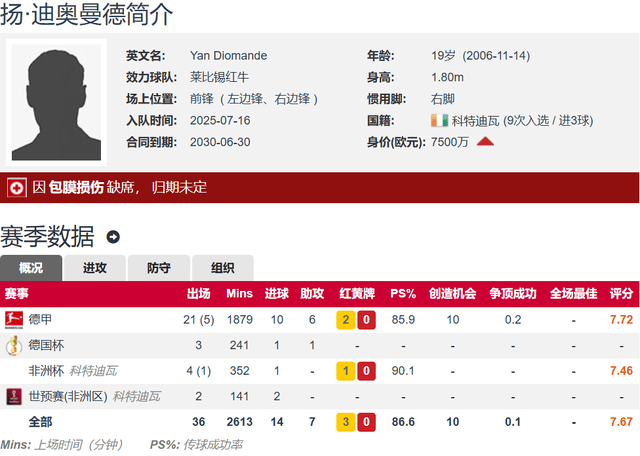 แจน ดิออร์มันด์ วัย 19 ปี สูง 1.80 เมตร ผู้เล่นเท้าขวา สามารถเล่นปีกซ้ายได้ เล่นปีกขวา สัญญาที่มีอยู่จนถึงปี 2030 เงินเดือนประจำปีเพียง 750,000 ยูโร หรือก่อนหักภาษี ในฤดูกาลแรกของการเข้าร่วมไลพ์ซิก เขาได้ส่งข้อมูลที่น่าภาคภูมิใจ 29 รายการจาก 11 ประตูและ 7 แอสซิสต์ Jan-Diormand ผลงานที่โดดเด่นของเขาในไลพ์ซิกทำให้มูลค่าของเขาทะยานขึ้นจาก 1.5 ล้านยูโรเป็น 75 ล้านยูโร และเพิ่มขึ้น 73.5 ล้านยูโรในเวลาไม่ถึงฤดูกาล เป็นผู้เล่นที่ขึ้นมากที่สุดในห้าลีกหลักในฤดูกาลนี้