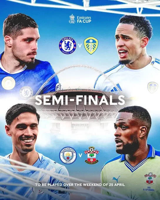 เอฟเอ คัพ รอบรองชนะเลิศ : แมนเชสเตอร์ ซิตี้ พบ เซาแธมป์ตัน, เชลซี vs ลีดส์ ยูไนเต็ด