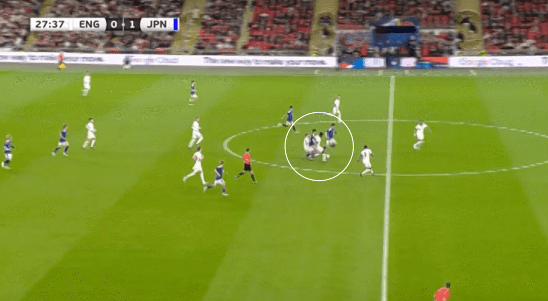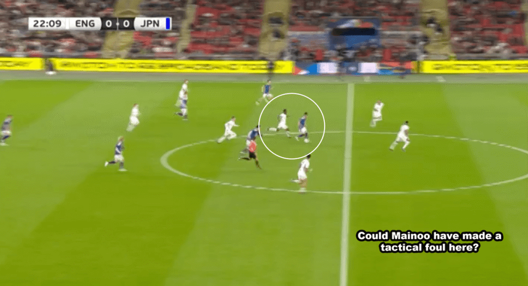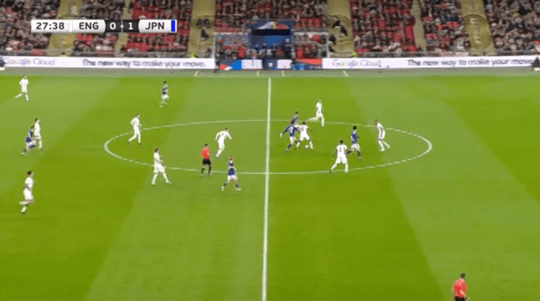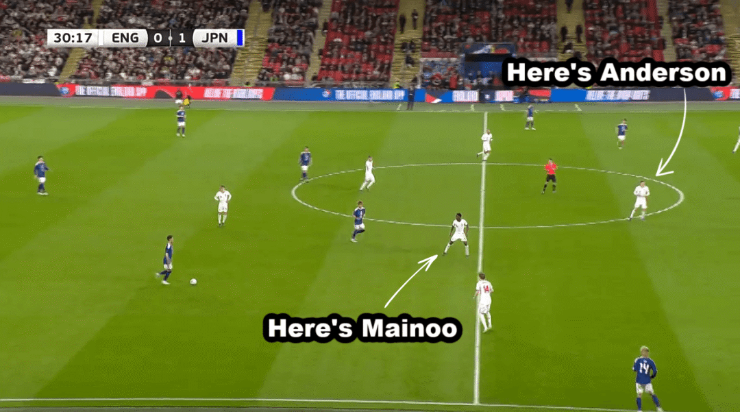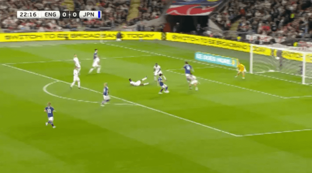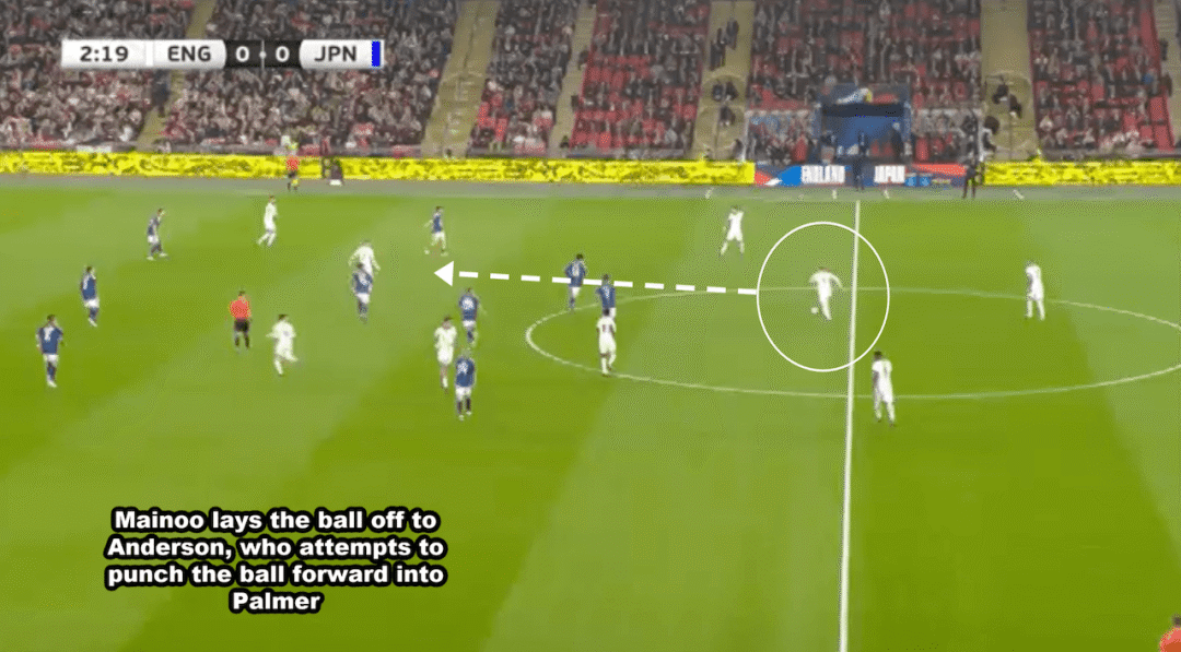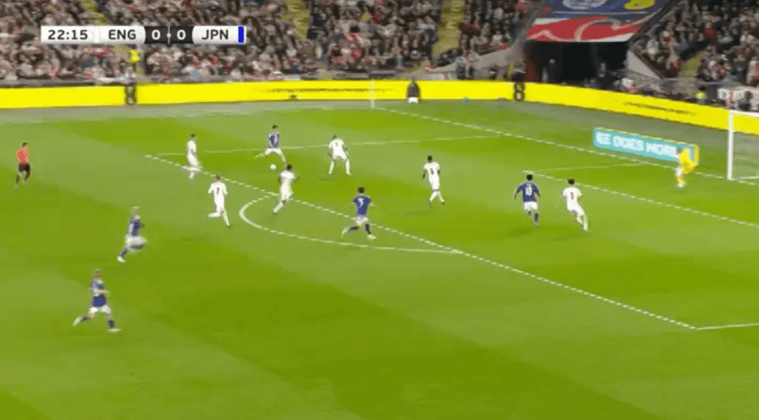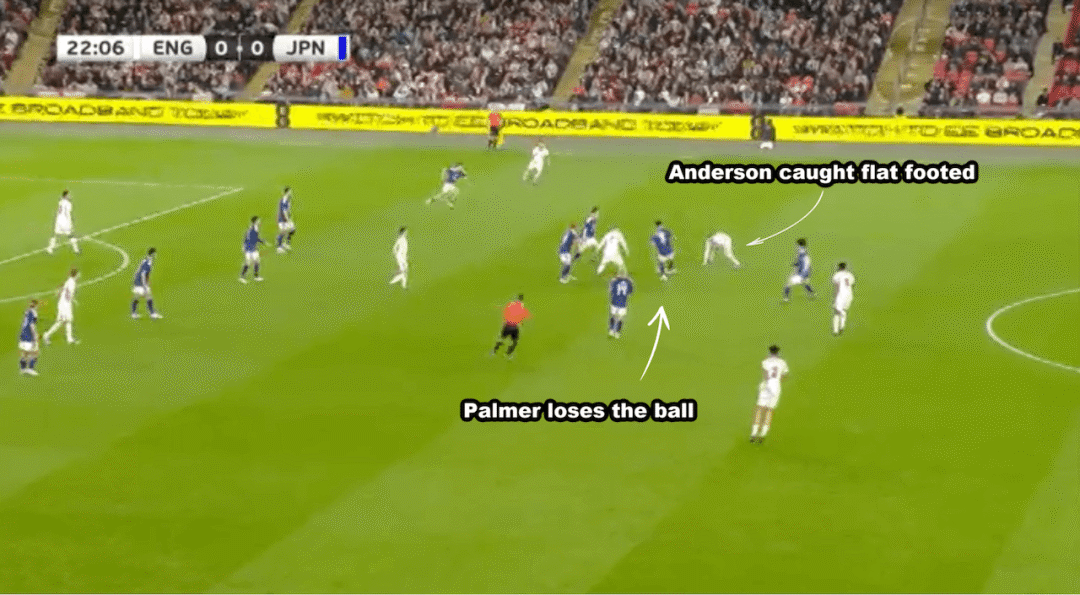 ในเวลานั้น โคล พาลเมอร์ เสียบอลในแดนหน้า และแอนเดอร์สันเสียสมาธิและล้มเหลวในการจัดการกับคู่ต่อสู้ในเวลา และเมนอยไม่ได้ติดตามใครเลย ญี่ปุ่นต่อสู้กลับและทำคะแนนได้ในที่สุด