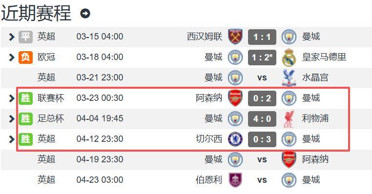 - 曼城3-0切尔西,拿下英超争冠路上的一场强强对话,还是客胜,含金量十足,切尔西大概率会是曼城足总杯决赛的对手。