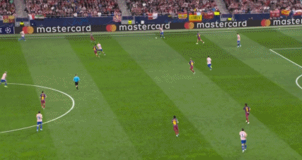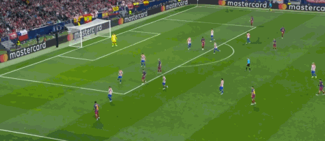ในนาทีที่ 53 แอตเลติโก มาดริด วิ่งอย่างดุเดือดกับบอลไปหน้าเขตโทษของ บาร์เซโลน่า โดยอัลวาเรซ เลี้ยงบอล ไปอยู่หน้าเขตโทษของ บาร์เซโลน่า จากนั้นก็ทำบอลคืนให้ลัคแมน หลังเตะตรงๆยิงยาวแต่บอลกว้างนิดนึง