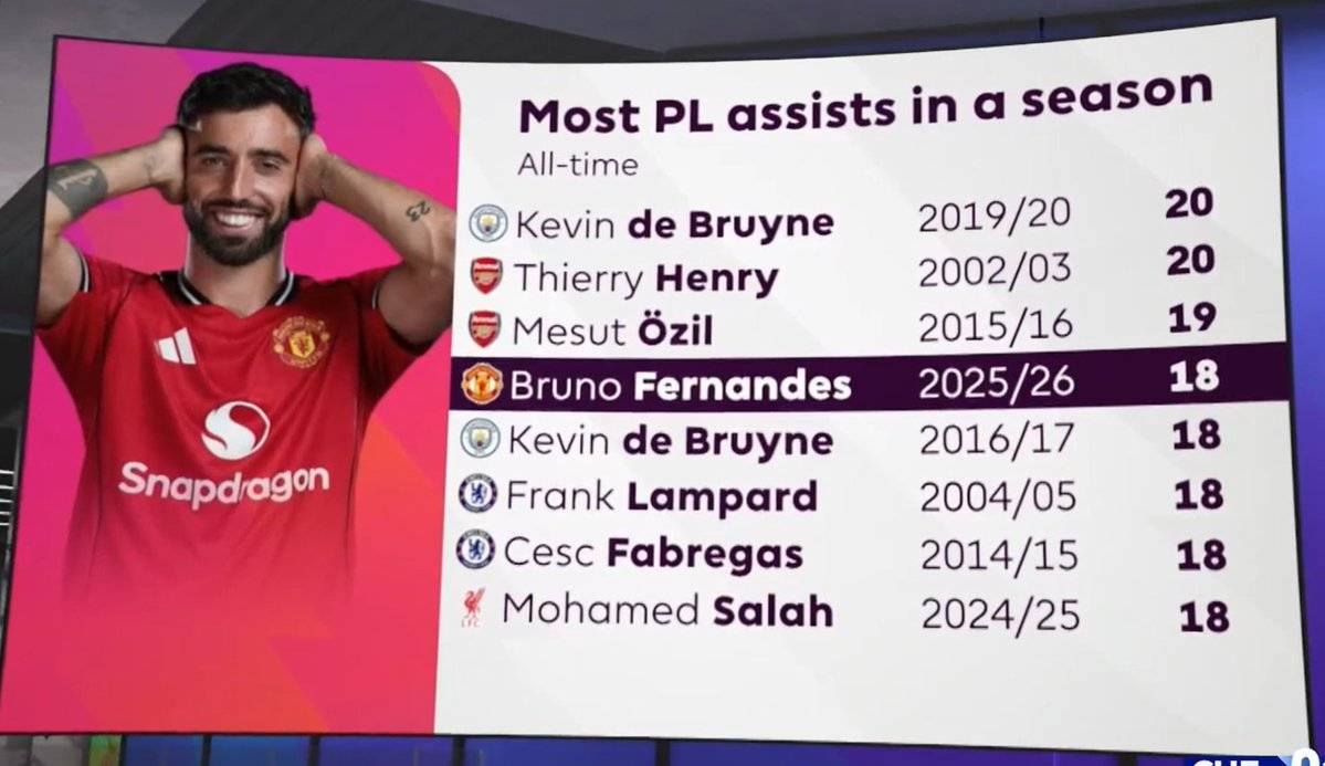บี-ฟี วัย 31 ปี ด้วยแอสซิสต์ของเขาที่สแตมฟอร์ด บริดจ์ ก็ประสบความสำเร็จอีกอย่าง ผู้เล่นคนที่สี่ในประวัติศาสตร์ของพรีเมียร์ลีกเพื่อช่วยเหลือในฤดูกาลที่ 10 แอสซิสต์ในหนึ่งฤดูกาล B-FEE เสมอกับ Muzzy Izzet ผู้เล่นในเลสเตอร์ซิตี้ในฤดูกาล 2003/04 ต่อหน้าเขา ตอนนี้มีเพียงซีซาร์ ฟาเบรกาส ฤดูกาล 2014/15 และซาลาห์ในฤดูกาล 2024/25 ทั้งคู่มีแอสซิสต์ 11 แอสซิสต์