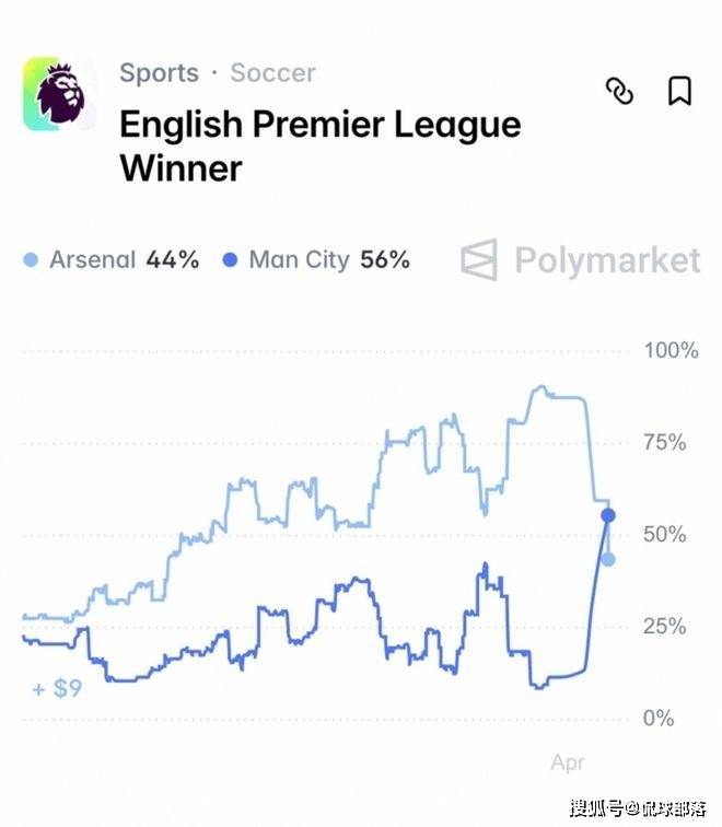 ในศึกโฟกัสพรีเมียร์ลีก รอบที่ 33 ที่สิ้นสุดลงเมื่อ 20 เมษายน สมัยปักกิ่ง แมนเชสเตอร์ ซิตี้ เอาชนะ อาร์เซน่อล 2-1 ในบ้าน หลังเกม องค์กร Polymarket ที่มีอำนาจยังให้ความน่าจะเป็นล่าสุดในการคว้าแชมป์ แมนเชสเตอร์ ซิตี้ แซงหน้าอาร์เซนอลด้วยความเป็นไปได้ 56% ของแชมป์เปี้ยน และความน่าจะเป็นล่าสุดของอาร์เซนอลในการคว้าแชมป์ได้ลดลงเหลือ 44%