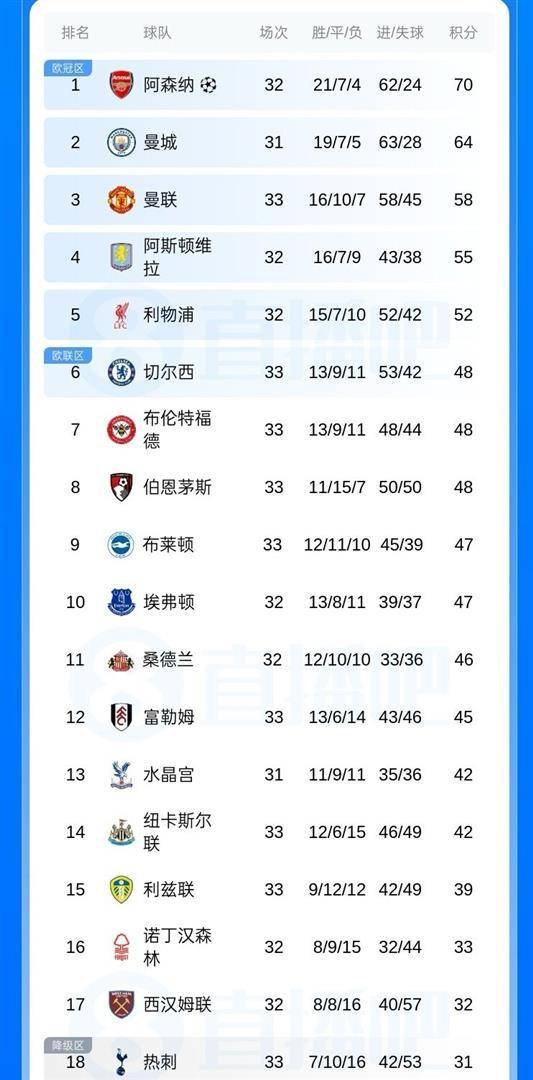 หลังจบพรีเมียร์ลีก 33 หลังเล่นรอบที่ 33 หลายครอบครัวมีความสุขและบางคนก็กังวล แมนเชสเตอร์ ยูไนเต็ด 1-0 ที่สแตมฟอร์ด บริดจ์ ภายใต้เชลซี ตั๋วแชมเปี้ยนส์ลีกนั้นอยู่ในกระเป๋าของพวกเขา ด้านสเปอร์ส มันกระโดดซ้ำๆ ในแนวนอนระหว่างสวรรค์และนรก ไบรตันเสมอ 2-2 และเขาไม่ประสบความสำเร็จใน 15 รอบ เขาก้าวเข้าไปในหล่มของเขตตกชั้น มองท่านี้ผมกลัวว่าเขาจะบอกลาพรีเมียร์ลีกจริงๆ เกมอื่นๆ นั้นน่าตื่นเต้นพอๆ กัน บอร์นมัธยังคงยังคงเฮอริเคน ลีดส์ ยูไนเต็ด ลงจอดอย่างง่ายดาย และเบรนท์ฟอร์ดเล่นตัวเองจนตาย หลังจากรอบนี้ พรีเมียร์ลีก วัย 5 ขวบ และรูปแบบการตกชั้นก็เปลี่ยนไปอย่างสิ้นเชิง