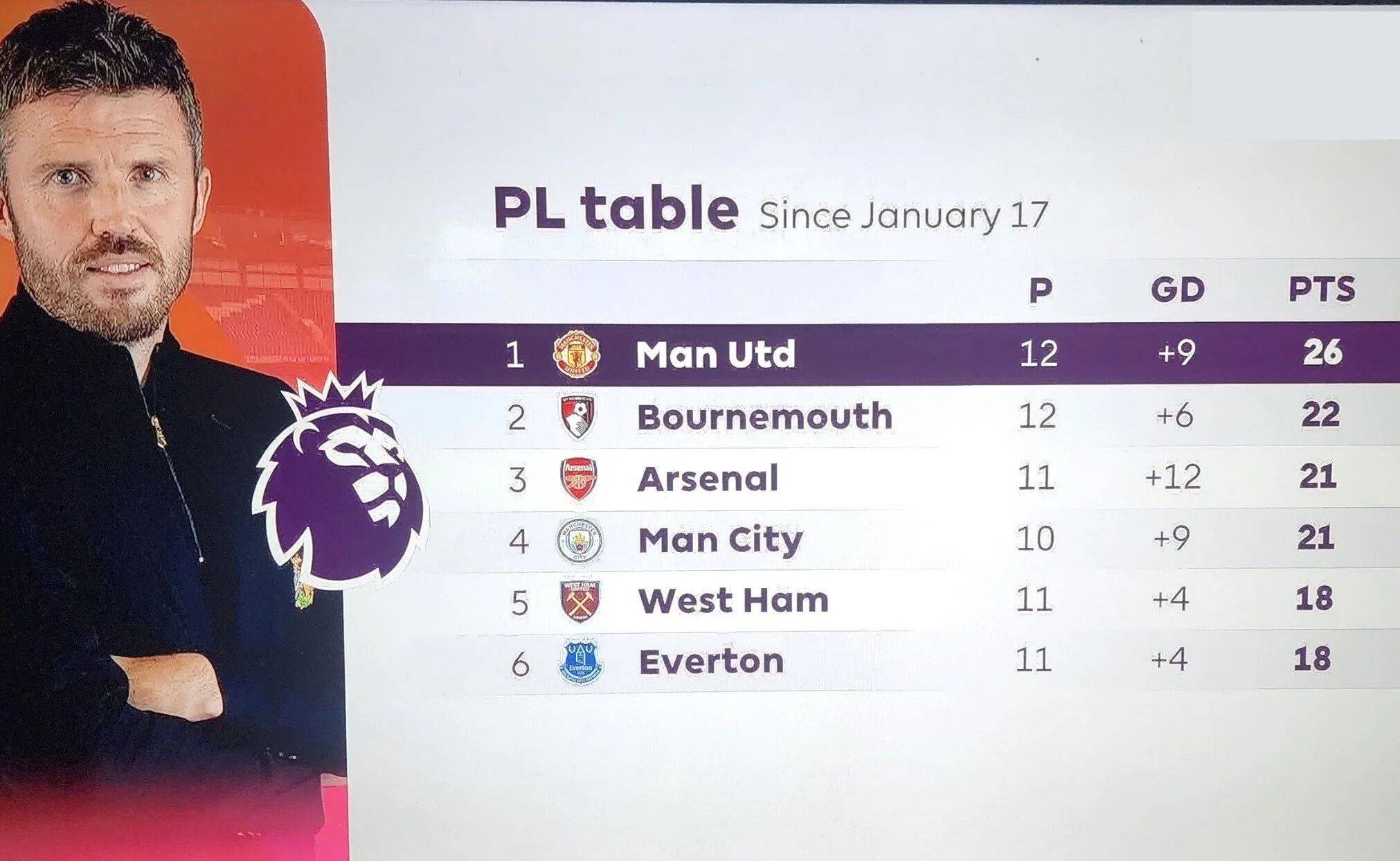 อาร์เซนอล, แมนเชสเตอร์ ซิตี้, แมนเชสเตอร์ ยูไนเต็ด, เวร่า, ลิเวอร์พูล, เชลซี และ เบรนท์ฟอร์ด กำลังอยู่ในระดับแนวหน้าของพรีเมียร์ลีก ยกเว้นปีศาจแดง ถ้าคาร์ริคเอาชนะทีมอื่นได้ทั้งหมด เขาจะไม่เพิกเฉยต่อคำสัญญาระยะยาวอย่างแน่นอน