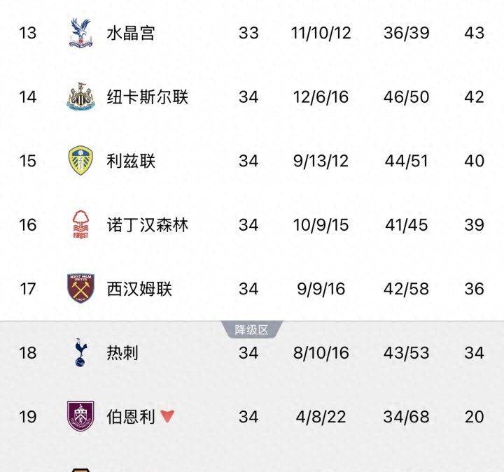 เมื่อวันที่ 26 เมษายน ตามเวลาปักกิ่ง รอบที่ 34 ของพรีเมียร์ลีกสิ้นสุดลง และตัวแปรใหม่ก็ปรากฏในรูปแบบการตกชั้น ท็อตแนมเอาชนะวูล์ฟ 1-0 จบการตกต่ำในรอบ 15 นัดที่ผ่านมา แต่หลังจากชนะเกมพวกเขายังไม่กระโดดออกจากโซนตกชั้นและอยู่ห่างจากเวสต์แฮมเพียง 2 แต้มซึ่งอยู่ในพื้นที่ปลอดภัย