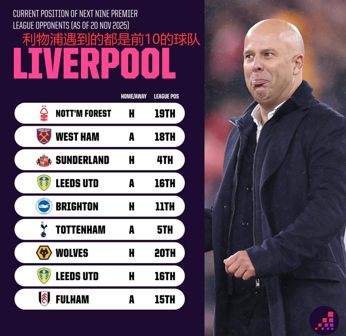 นอกจากนี้ นักเตะของลิเวอร์พูลไม่ได้อยู่ในสภาพที่ดีที่สุดก่อนการแข่งขัน โดยฟอร์มโดยรวมของทีมเป็นปัญหาหลัก สลอตต์มุ่งเป้าวิจารณ์ไปที่ "ความฟิตในการแข่งขัน" มากกว่าการปรับตัวของผู้เล่นใหม่ เขาสารภาพอย่างตรงไปตรงมาว่าเขาหวังว่าอิซัคจะได้ลงเล่นในหลายนัดมากกว่านี้ให้กับทีมชาติสวีเดน แต่เนื่องจากอิซัคเหลือใบเหลืองเพียงใบเดียวก็จะถูกแบน ทีมชาติสวีเดนจึงเข้าใจได้ว่าไม่ได้เลือกเขาสำหรับนัดที่สองประเด็นหลักที่อยู่เบื้องหลังคำแถลงนี้คือการจัดการจังหวะ: การแข่งขันระดับนานาชาติมีผลกระทบโดยตรงต่อ "คะแนนจังหวะ" ของสโมสร นักเตะบางคนขาดความเข้มข้นที่เพียงพอในระดับนานาชาติ บางคนต้องชดเชยความเข้มข้นในระดับสโมสร ในขณะที่บางคนต้องการลดภาระงานทันทีเนื่องจากทำงานหนักเกินไป สำหรับทีมที่ต้องเผชิญกับการแข่งขันติดต่อกัน 22 วัน นี่คือทั้งความจริงและความท้าทาย