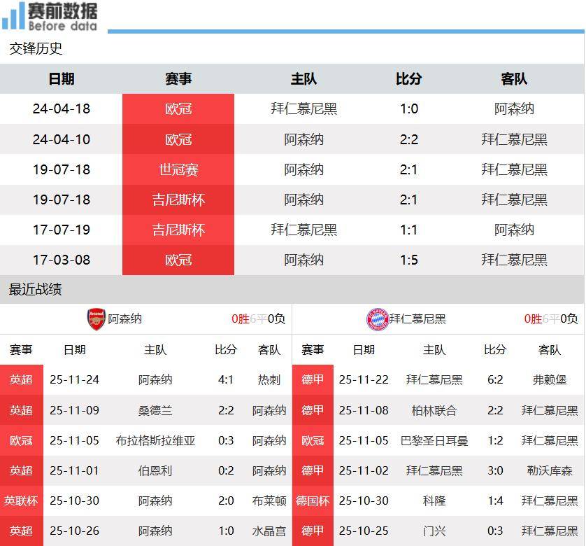 เวลา 04:00 น. ตามเวลาปักกิ่ง วันที่ 27 พฤศจิกายน การแข่งขันยูฟ่าแชมเปียนส์ลีก รอบแบ่งกลุ่ม นัดที่ 5 ได้มีการพบกันระหว่างสองทีมยักษ์ใหญ่ โดยทีมจ่าฝูงพรีเมียร์ลีก อาร์เซนอล เปิดบ้านต้อนรับการมาเยือนของจ่าฝูงบุนเดสลีกา บาเยิร์น มิวนิค ในการดวลกันของสองทีมอันดับต้นของตาราง