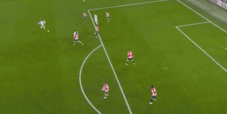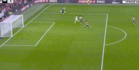 ในนาทีที่เจ็ด อาร์โนลด์ส่งบอลยาวอย่างแม่นยำลงทางริมเส้นขวา เอ็มบัปเป้รับบอลได้ ฝ่ากองหลังสองคนไปอย่างรวดเร็วก่อนจะซัดบอลด้วยพลังเต็มข้อจากขอบเขตโทษ บอลพุ่งเข้าประตูไปอย่างสวยงาม ส่งให้เรอัล มาดริดขึ้นนำ 1-0 และเริ่มต้นเกมได้อย่างยอดเยี่ยม!