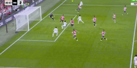 ในนาทีที่ 59 คาร์ราสส์ดึงบอลกลับมาจากฝั่งซ้าย. เอ็มบัปเป้ยิงไกลอย่างกะทันหันที่ทำให้อูไน ซีมอนไม่ทันตั้งตัว. บอลโค้งลงอย่างเฉียบคมเข้าประตูทางมุมล่างซ้าย ทำให้เรอัล มาดริดได้ประตูที่สาม – 3-0!