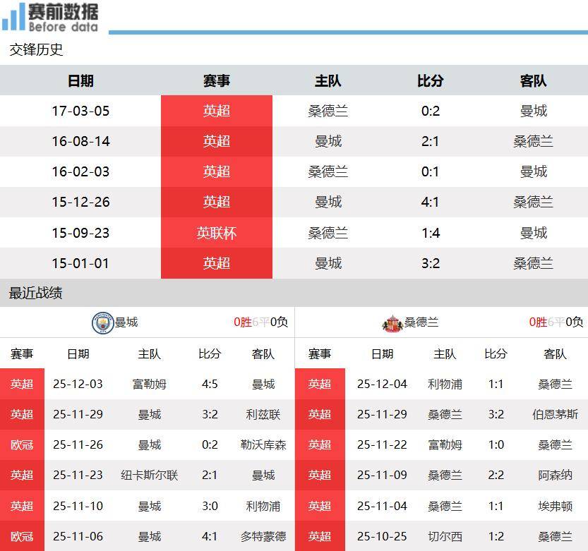 ประการแรก:สถานการณ์ของทีม! หลังจากผ่านไป 14 นัดในพรีเมียร์ลีก แมนเชสเตอร์ ซิตี้ อยู่ในอันดับที่สองด้วยคะแนน 28 คะแนน จาก 9 ชนะ 1 เสมอ และ 4 แพ้ ขณะที่ ซันเดอร์แลนด์ อยู่ในอันดับที่หกด้วยคะแนน 23 คะแนน จาก 6 ชนะ 5 เสมอ และ 3 แพ้ในการแข่งขันพรีเมียร์ลีกครั้งก่อน แมนเชสเตอร์ ซิตี้ เอาชนะ ฟูแล่ม ไปอย่างหวุดหวิด 5-4 ในเกมเยือน สกอร์เปลี่ยนจาก 5-1 เป็น 5-4 ซึ่งเผยให้เห็นถึงจุดอ่อนในแนวรับของทีมในแดนกลาง ทีมคว้าชัยชนะได้ 4 นัดจาก 5 นัดหลังสุด ซันเดอร์แลนด์ เสมอกับ ลิเวอร์พูล 1-1 ในเกมเยือน โดยแพ้เพียงนัดเดียวจาก 7 นัดหลังสุด