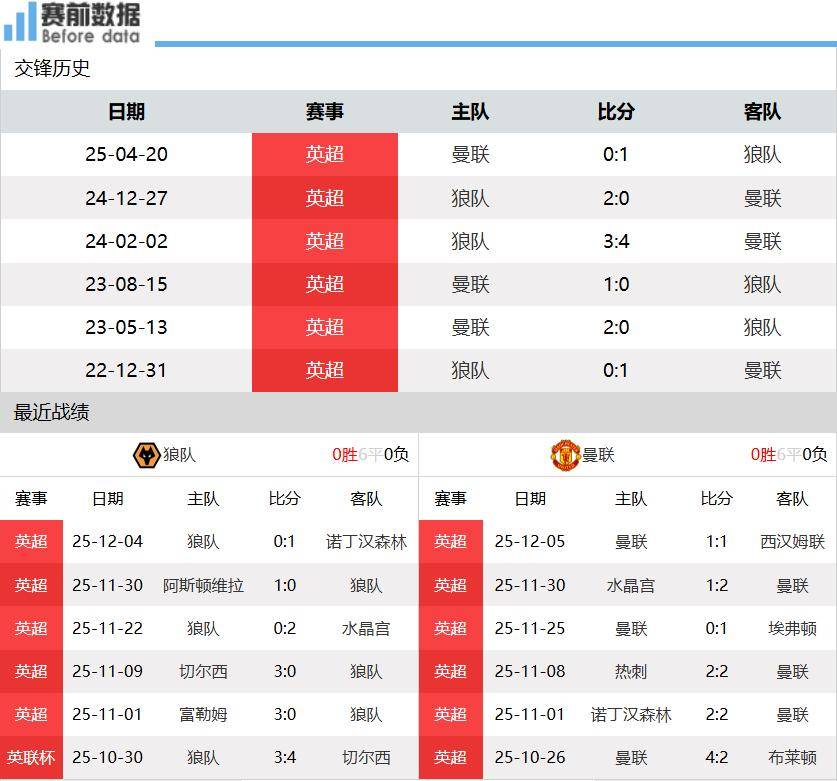สอง:ของขวัญคะแนนรออยู่ แมนเชสเตอร์ ยูไนเต็ด สามารถไล่ตามตำแหน่งแชมเปียนส์ลีกได้ด้วยการเอาชนะวูล์ฟส์ในเกมเยือน! วูล์ฟส์กลายเป็นผู้ให้ของขวัญในฤดูกาลนี้ มอบคะแนนให้กับทุกทีมที่พวกเขาเผชิญหน้า ด้วยชัยชนะเพียงครั้งเดียวในห้าเกมล่าสุด ยูไนเต็ดจะกระหายที่จะคว้าสามคะแนนเต็มจากทีมที่อยู่ท้ายตารางช่องว่างด้านคุณภาพระหว่างทั้งสองทีมนั้นกว้างใหญ่ ทำให้แมนเชสเตอร์ ยูไนเต็ด ไม่มีเหตุผลที่จะไม่คว้าสามแต้มเต็มจากการเล่นนอกบ้านกับวูล์ฟส์ การแข่งขันนี้ถือเป็นโอกาสที่ดีสำหรับนักเตะใหม่ของยูไนเต็ดในการเพิ่มสถิติของพวกเขา หากยูไนเต็ดสามารถเอาชนะวูล์ฟส์ได้อย่างสบายๆ เพื่อเก็บแต้มได้ พวกเขาจะเสมอกับเชลซีที่มีคะแนนเท่ากันในโซนคัดเลือกแชมเปียนส์ลีก ซึ่งปัจจุบันอยู่อันดับที่ห้า เนื่องจากมีผลต่างประตูได้เสียที่น้อยกว่า ยูไนเต็ดสามารถกระโดดขึ้นไปอยู่อันดับที่หกได้
