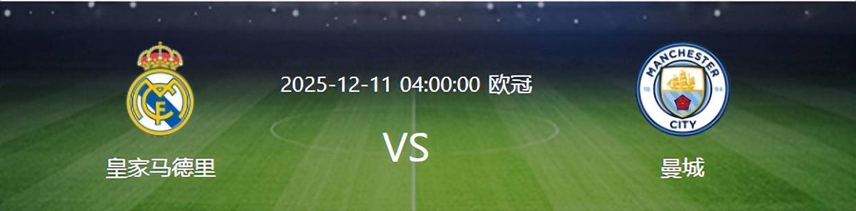 เวลา 04:00 น. ตามเวลาปักกิ่ง วันที่ 11 ธันวาคม การแข่งขันยูฟ่าแชมเปียนส์ลีก รอบที่ 6 จะมีการพบกันที่ทุกคนรอคอยอย่างมาก เมื่อทีมยักษ์ใหญ่จากลาลีกาอย่างเรอัล มาดริด เปิดบ้านต้อนรับการมาเยือนของแมนเชสเตอร์ ซิตี้ ที่สนามเหย้าของพวกเขา