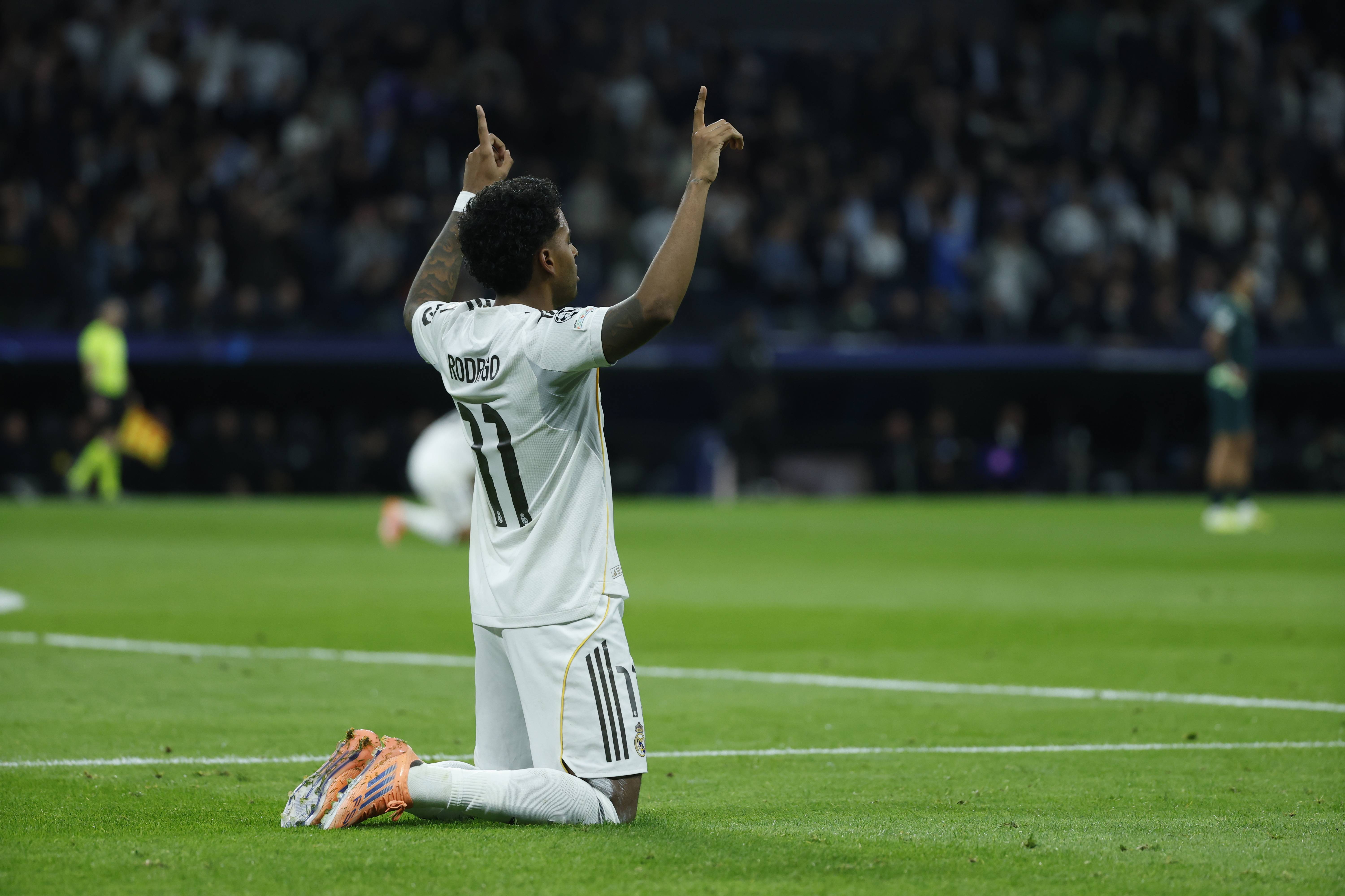 เมื่อวันที่ 10 ธันวาคม โรดรีโก้ นักเตะของเรอัล มาดริด ฉลองการทำประตูได้สำเร็จ ซินหัว/EPA