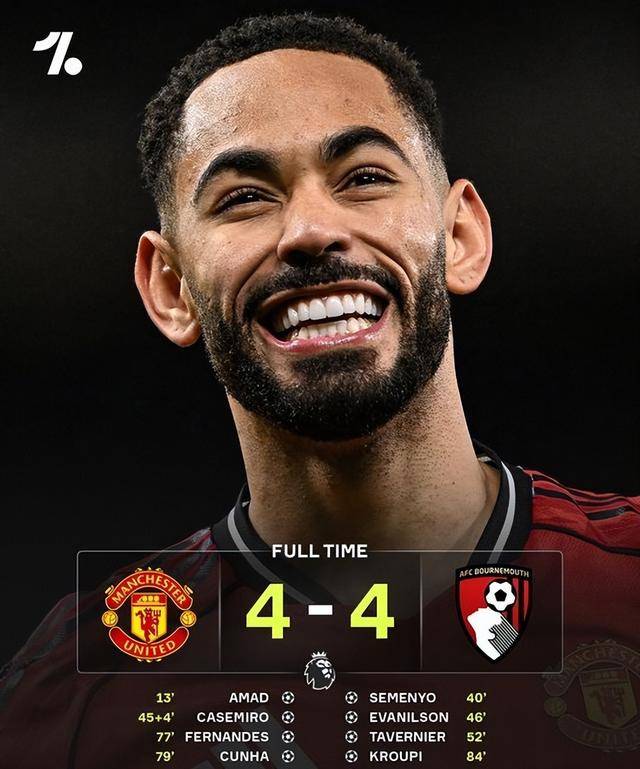 ในนาทีที่ 84 แมนเชสเตอร์ ยูไนเต็ด เสียการครองบอลในแดนตัวเอง เปิดโอกาสให้บอร์นมัธโต้กลับอย่างรวดเร็ว ครูปิชยิงเข้าไปอย่างเฉียบขาด ทำให้สกอร์เป็น 4-4!