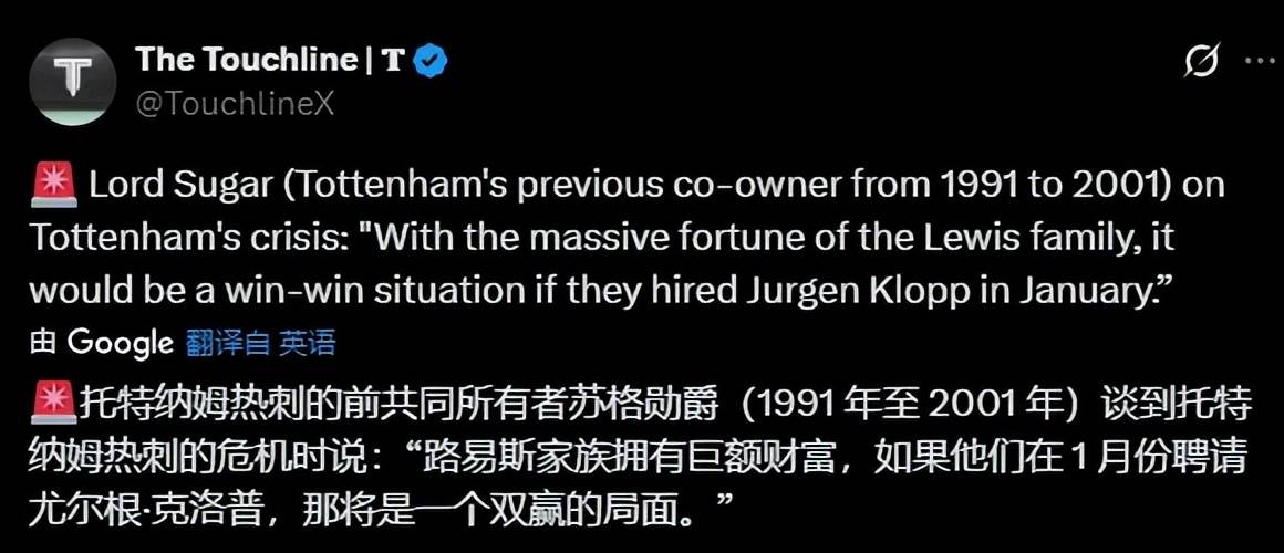 ผลงานที่ย่ำแย่นี้ทำให้ตำแหน่งของแฟรงค์ในฐานะผู้จัดการทีมท็อตแน่ม ฮ็อตสเปอร์สอยู่ในสถานการณ์ที่ไม่มั่นคงมากขึ้น อดีตประธานสโมสรสเปอร์ส อลัน ชูการ์ ได้แสดงความปรารถนาอย่างเปิดเผยว่าต้องการการเปลี่ยนแปลงในตำแหน่งผู้จัดการทีมชายวัย 78 ปีได้เสนออย่างกล้าหาญหลังจากการพ่ายแพ้ของสเปอร์สต่อฟอเรสต์ 3-0: "สเปอร์สควรดึงเจอร์เก้น คล็อปป์ ตำนานของลิเวอร์พูลมาแทนที่แฟรงค์" เขาเขียนบน X: "ด้วยทรัพย์สมบัติมหาศาลของครอบครัวลูอิส การดึงเจอร์เก้น คล็อปป์มาในเดือนมกราคมจะเป็นประโยชน์ทั้งสองฝ่าย เงินทุนมีมากมาย ผู้จัดการทีมก็ยอดเยี่ยม ใครเห็นด้วยบ้าง?"