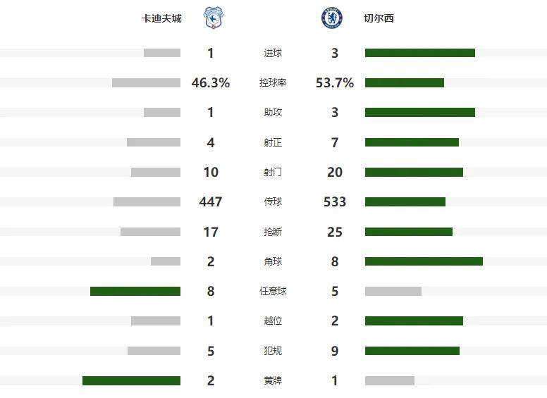 นอกจากนี้ สถิติการแข่งขันยังเผยให้เห็นว่าเชลซีครองบอลได้เหนือกว่า ทั้งในด้านการครองบอล จำนวนการยิงเข้ากรอบ และการจ่ายบอลสำคัญ ซึ่งแสดงให้เห็นถึงพลังโดยรวมและความสามารถของทีมยักษ์ใหญ่ในพรีเมียร์ลีกในการควบคุมเกมเกี่ยวกับรายชื่อผู้เล่นตัวจริง คาร์ดิฟฟ์ ซิตี้ ส่งผู้เล่นตัวจริงลงสนามรวมถึง ทร็อตเตอร์ และ ฮวาง อิน-บอม ขณะที่ เชลซี ส่งผู้เล่นหลักลงสนาม เช่น จอนส์สัน, อากังปา และ กานา โช ผู้เล่นสำรอง เนโต้ ที่ถูกส่งลงสนาม ก็ทำหน้าที่ได้อย่างสำคัญเช่นกัน