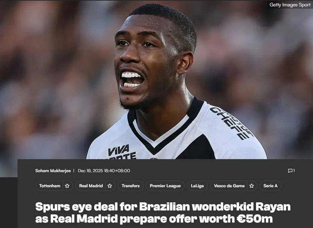 ข้อเสนอ 50 ล้านปอนด์ + ค่าปรับ 80 ล้านปอนด์! ดาวรุ่งวัย 19 ปีจุดชนวนสงครามประมูลระหว่างเรอัล มาดริดและท็อตแน่ม ฮ็อตสเปอร์ – เขาจะไปลงเอยที่ไหน? _Layan_ _ศักยภาพ_ _ยูโร_