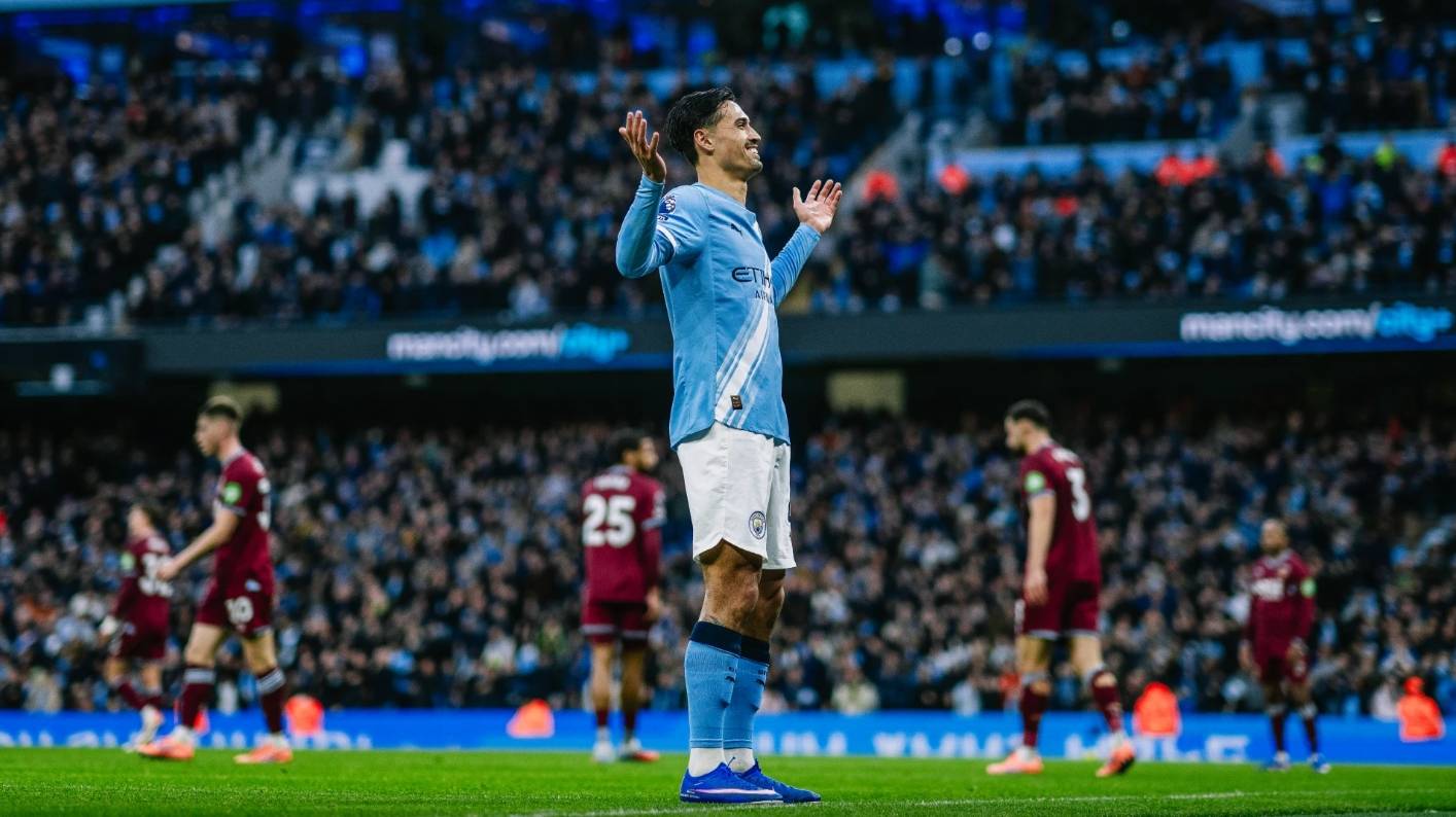 ในนาทีที่ 38 แมนเชสเตอร์ ซิตี้ ทำการผ่านบอลอย่างซับซ้อนอีกครั้งในแดนหน้า เซร์คิ โรแบร์โต ตัดบอลได้และพาบอลเข้าไปในกรอบเขตโทษ ก่อนจะส่งบอลข้ามหน้าประตู เออร์ลิง ฮาลันด์ ตามมาและสไลด์บอลผ่านหน้าประตูให้ ฌูเอา คันเซโล วิ่งเข้ามาและยิงเข้าประตูไป ซิตี้ขยายสกอร์นำเป็น 2-0 เหนือเวสต์แฮม ยูไนเต็ด ที่สนามเอทิฮัด สเตเดียมหลังจากพักครึ่ง เวสต์แฮม ยูไนเต็ด พยายามเปลี่ยนเกมด้วยการบุกกดดันอย่างหนัก ในนาทีที่ 47 ซามูเอลสันพาบอลขึ้นทางฝั่งซ้ายและเปิดบอลต่ำจากเส้นหลัง แต่โดนนารุมม่าปัดออกไปได้ เปยีเก้ตามซ้ำแต่โดนนารุมม่าเซฟได้อย่างเหลือเชื่ออีกครั้ง