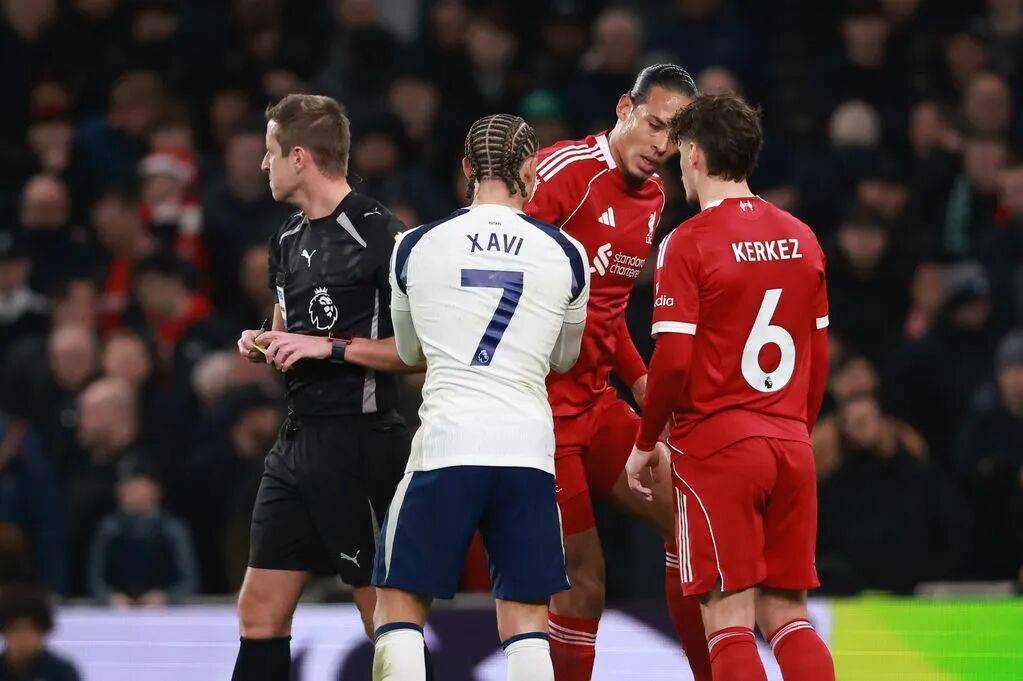 จุดสนใจของเหตุการณ์นี้อย่างไม่ต้องสงสัยคือการแจกใบแดงให้กับฮาร์วีย์ ซิมอนส์ ในนาทีที่ 29 เวอร์จิล ฟาน ไดจ์ค กองหลังตัวหลักของลิเวอร์พูลได้ครองบอลและเดินหน้าไปข้างหน้า ทำให้ฮาร์วีย์ ซิมอนส์กดดันอย่างรุนแรง อย่างไรก็ตาม ในระหว่างการปะทะนี้ ซิมอนส์ได้เตะโดยตรงไปที่บริเวณเอ็นร้อยหวายของน่องฟาน ไดจ์คจากด้านหลัง ทำให้ฟาน ไดจ์คทรุดลงด้วยความเจ็บปวดหลังจากการปรึกษากับผู้ช่วยผู้ตัดสินวิดีโอ (VAR) ผู้ตัดสินได้แสดงใบแดงโดยตรงต่อซิมอนส์อย่างเด็ดขาด ส่งผลให้เขาถูกไล่ออกจากสนามทันที การตัดสินใจนี้หมายความว่าซิมอนส์จะต้องถูกแบนสามนัด ซึ่งถือเป็นความเสียหายครั้งใหญ่สำหรับท็อตแน่ม ฮ็อตสเปอร์