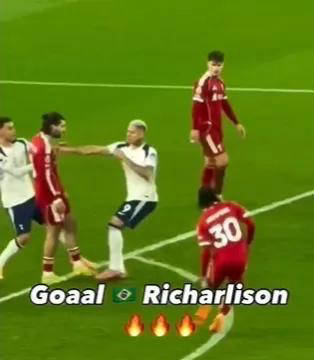 ในนาทีที่ 83 ริชาร์ลิซอนทำประตูตีเสมอให้กับท็อตแน่ม ฮ็อตสเปอร์ แต่การกระทำของเขาหลังจากนั้นได้จุดชนวนให้เกิดความวุ่นวายครั้งใหญ่ เขาเข้าไปหาผู้เล่นลิเวอร์พูลที่ล้มลงอย่างเอกิติ และที่น่าตกใจคือเขาคว้าคอคู่แข่งไว้ การกระทำยั่วยุนี้ทำให้อลิสซอน ผู้รักษาประตูของลิเวอร์พูลถึงขีดสุด และผลักริชาร์ลิซอนกลับไปเมื่อความตึงเครียดปะทุขึ้น ริชาร์ลิซอนปะทะกับกองกลางลิเวอร์พูล โซบอสซ์ไล นำไปสู่การกระทบกระทั่งกันเล็กน้อยที่มีการสัมผัสทางกายภาพ กัปตันทีมฮังการี โซบอสซ์ไล ได้รับใบเหลืองจากการมีส่วนร่วมในเหตุการณ์นี้ ส่งผลให้ถูกแบนในนัดถัดไป อย่างไรก็ตาม สิ่งที่น่าประหลาดใจคือริชาร์ลิซอน ผู้ก่อเหตุ กลับไม่ถูกลงโทษแต่อย่างใด