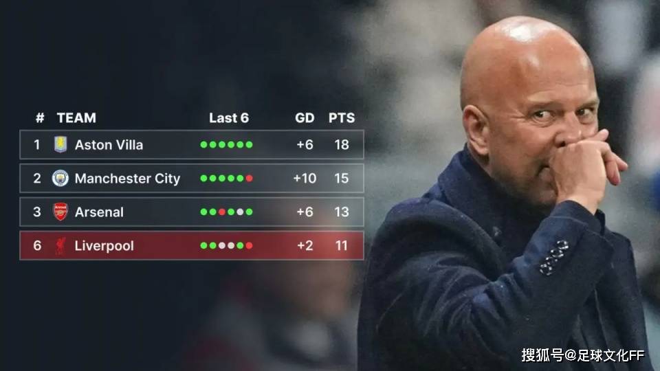 ลิเวอร์พูลอยู่ในอันดับที่หกของตารางฟอร์มพรีเมียร์ลีก ตามหลังทีมเต็งแชมป์สามทีม