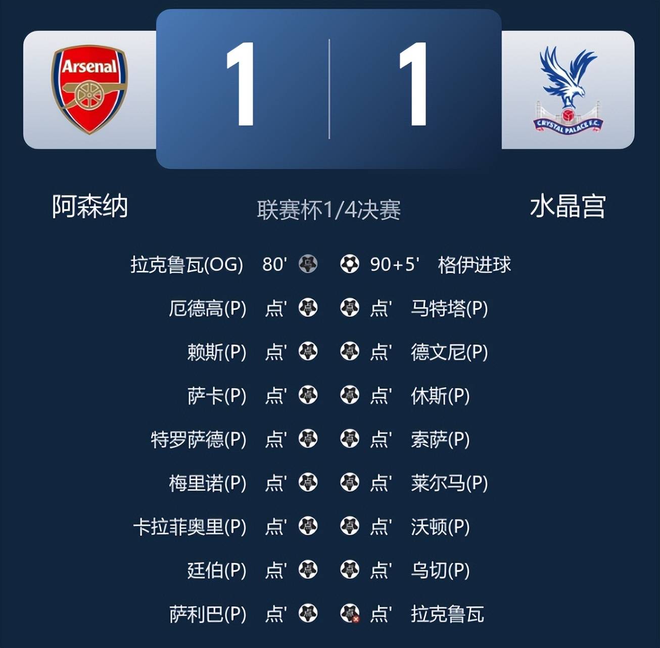 อาร์เซนอลผ่านเข้ารอบในลีกคัพด้วยการดวลจุดโทษ, ทำลายทางตันด้วยประตูตัวเอง; มีเพียง ซาก้า เท่านั้นที่พิสูจน์ความเด็ดขาด _ลาครัวซ์_ แมนเชสเตอร์ ซิตี้ เชลซี