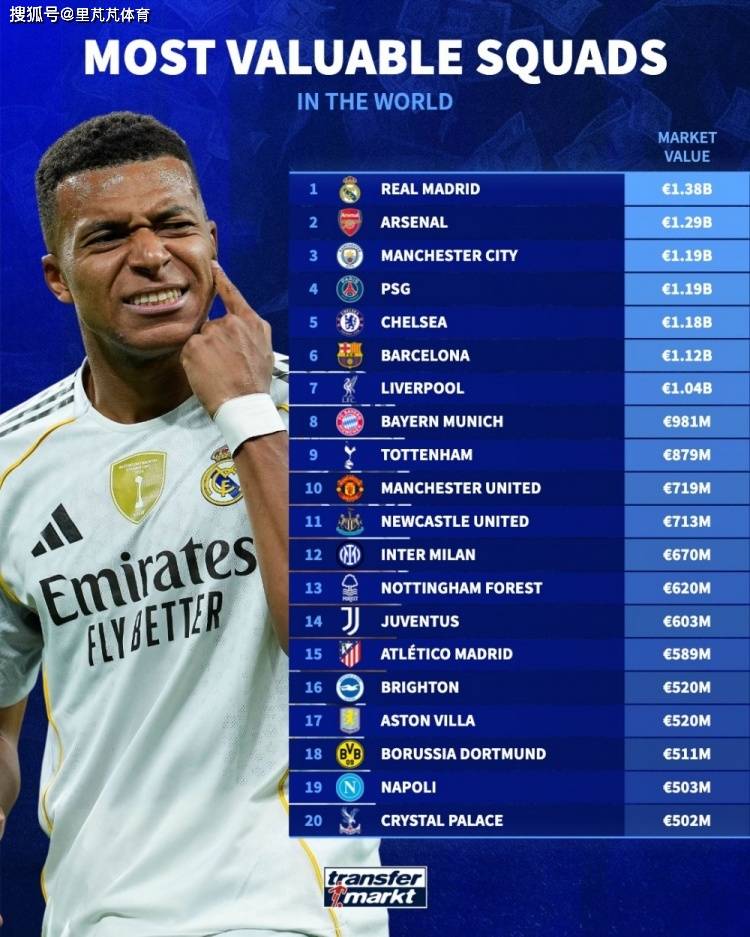 Transfermarkt ได้อัปเดตมูลค่าผู้เล่นในทุกลีกและเผยแพร่การจัดอันดับมูลค่าสโมสรแล้ว เรอัล มาดริด ครองอันดับหนึ่งด้วยมูลค่า 1.38 พันล้านยูโร ตามมาด้วย อาร์เซนอล และ แมนเชสเตอร์ ซิตี้ มูลค่าของพวกเขาถือว่าสูงมากจริงๆ