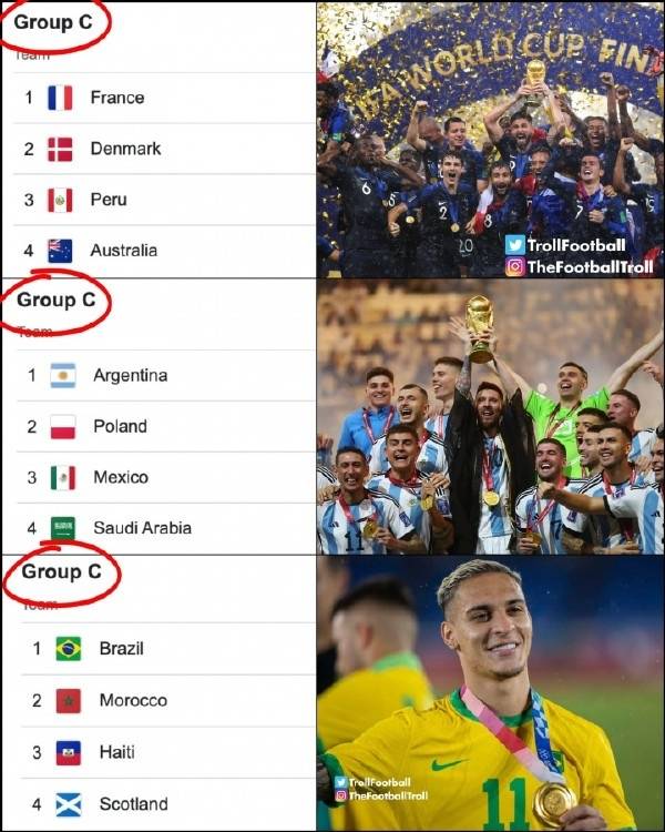 สาเหตุก็คือแชมป์ฟุตบอลโลกสองสมัยล่าสุดอย่างฝรั่งเศสและอาร์เจนตินา ต่างก็ผ่านเข้ารอบจากกลุ่ม C ด้วยชัยชนะทั้งคู่ ยังต้องติดตามกันต่อไปว่าทีมแซมบ้าและแอนโธนีจะสามารถสร้างผลงานแบบเดียวกันนี้ได้หรือไม่