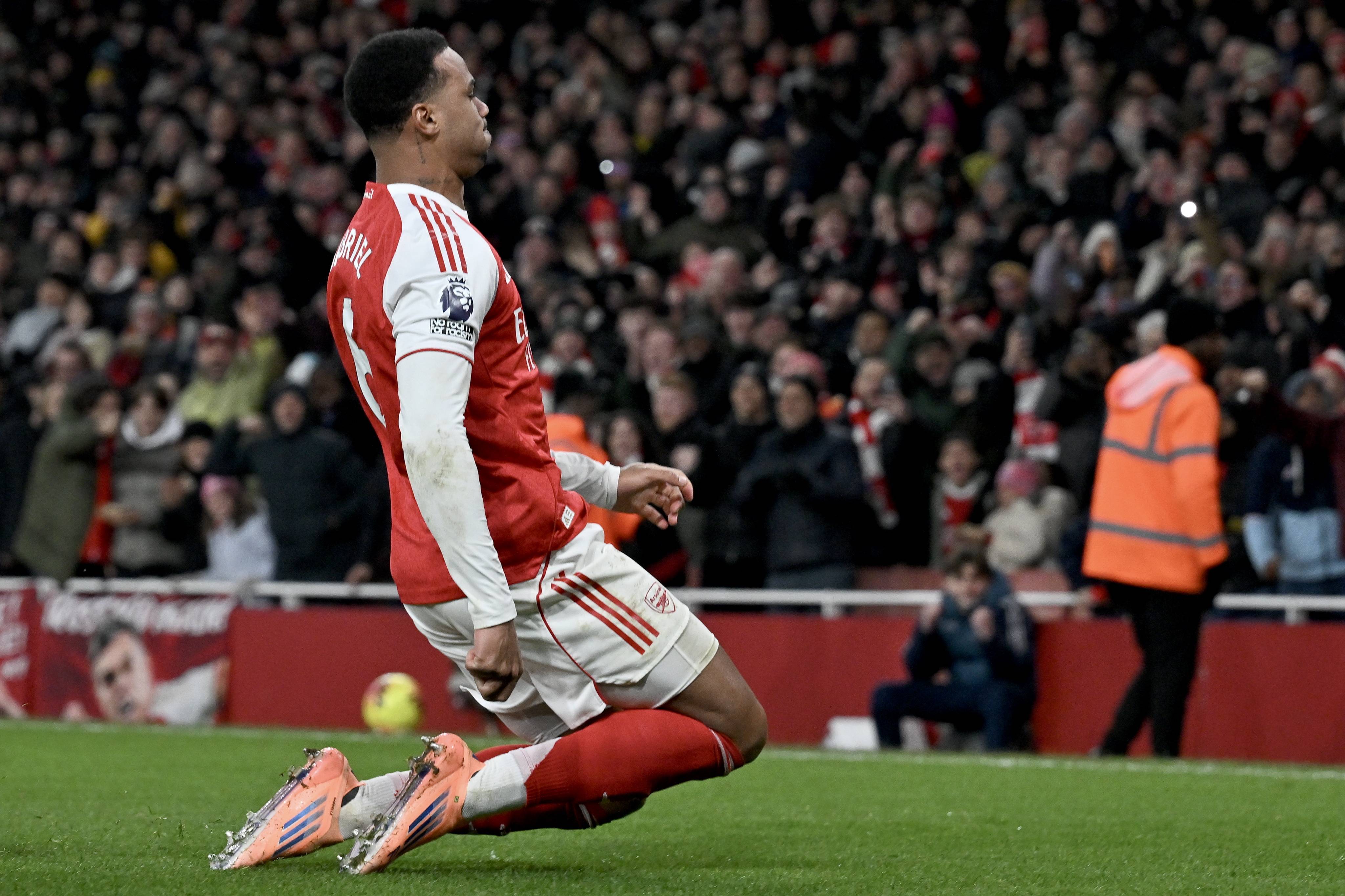 เมื่อวันที่ 30 ธันวาคม กาเบรียล นักเตะของอาร์เซนอล ฉลองการทำประตูเปิดให้กับทีม ซินหัว/EPA
