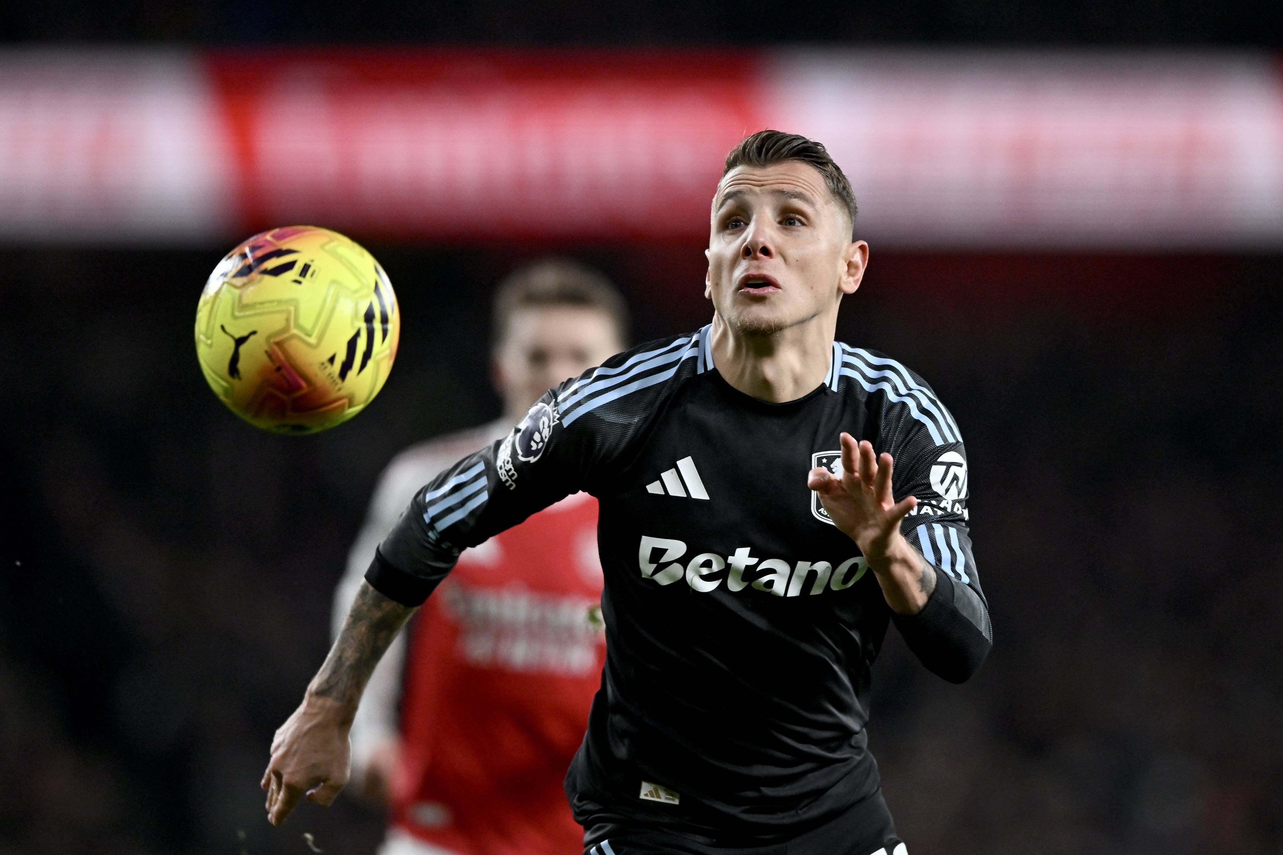 เมื่อวันที่ 30 ธันวาคม เมเรโน่ของอาร์เซนอล (ซ้าย) เข้าปะทะกับซานโช่ของแอสตัน วิลล่าเพื่อแย่งบอล ซินหัว/EPA